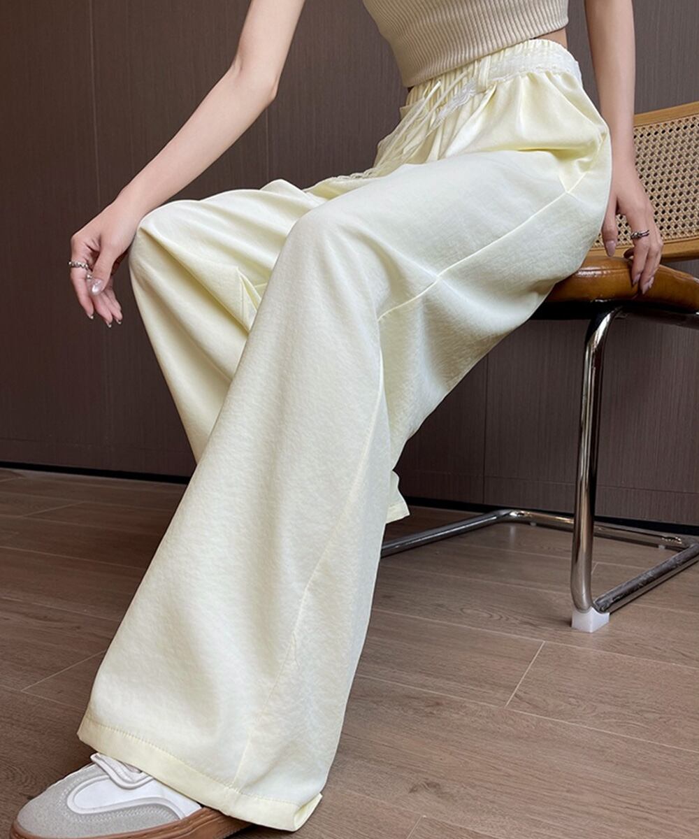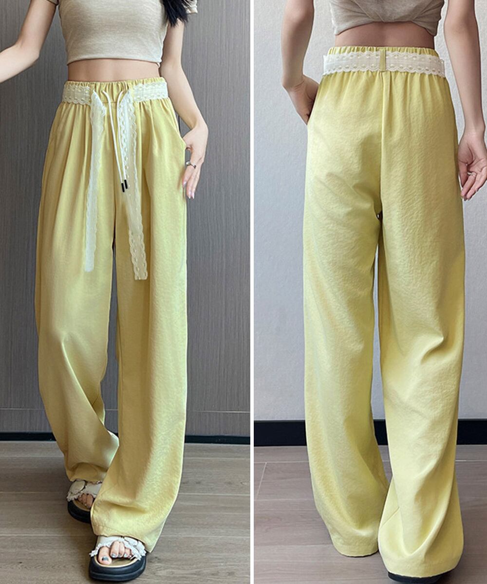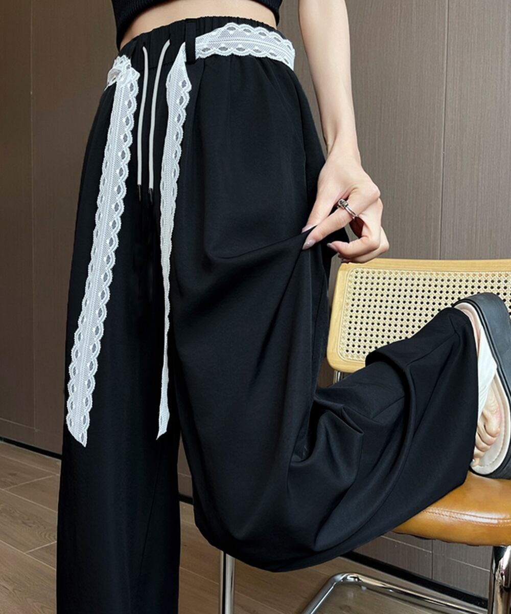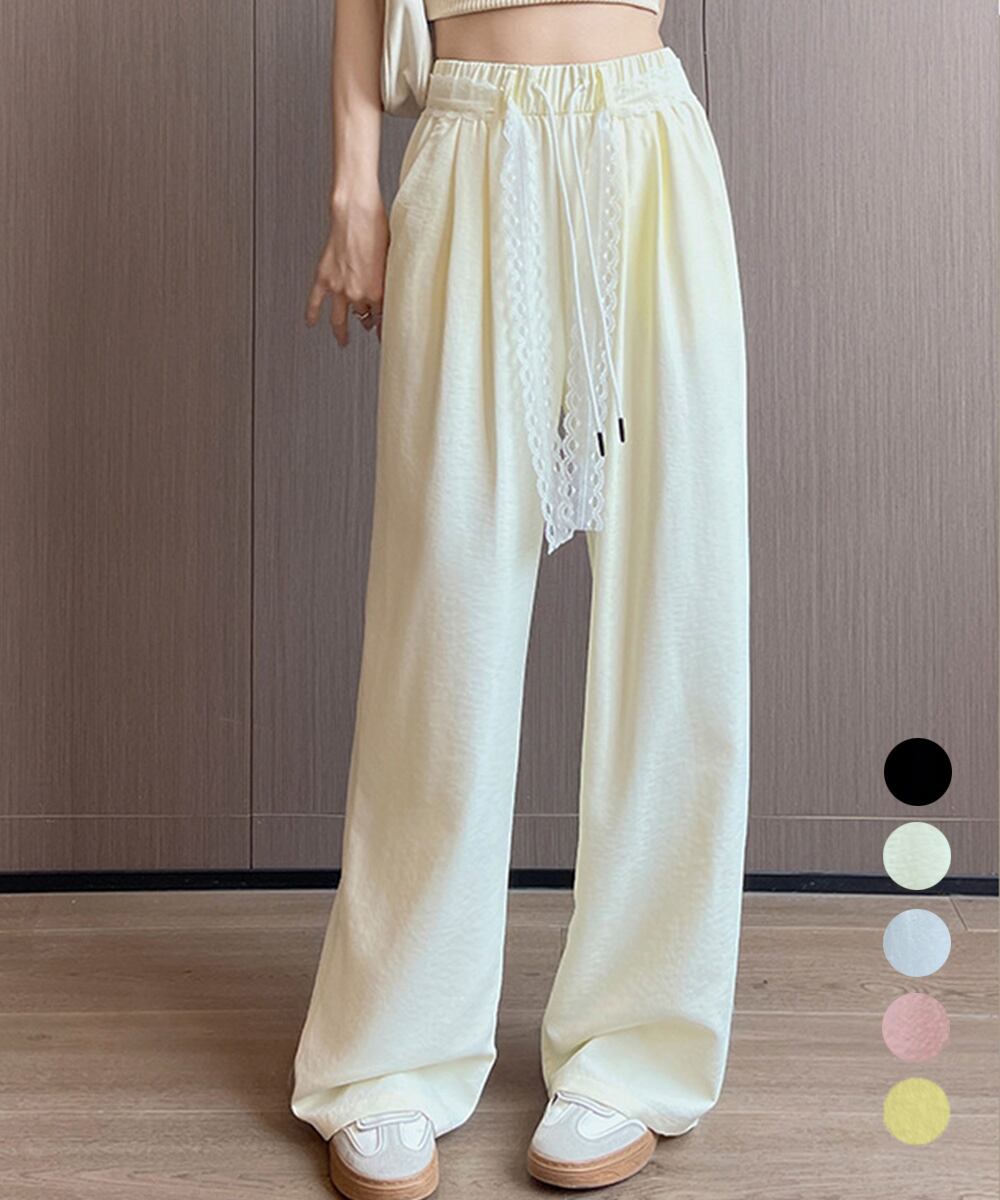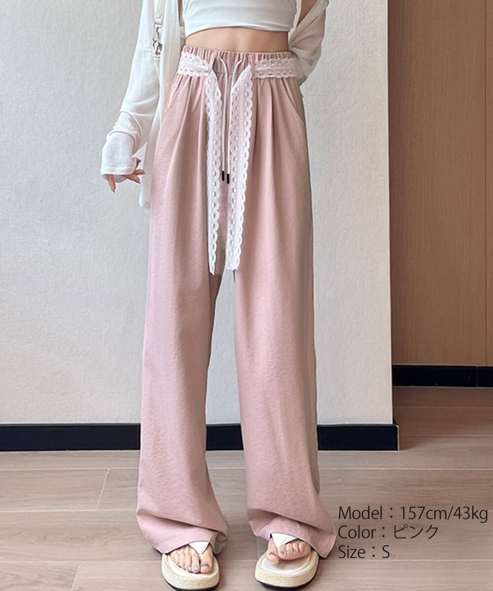 【日本倉庫即納】 レースワイドイージーパンツ韓国風ボトムス