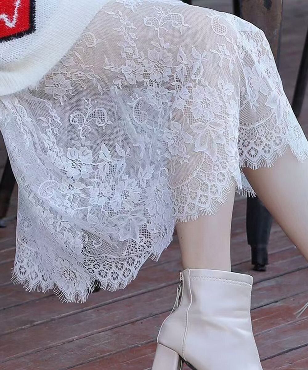 透け感 レーススカート 重ね着 ハイウエスト 大人可愛いボトムスレディース おしゃれ レイヤードスカート オールシーズン