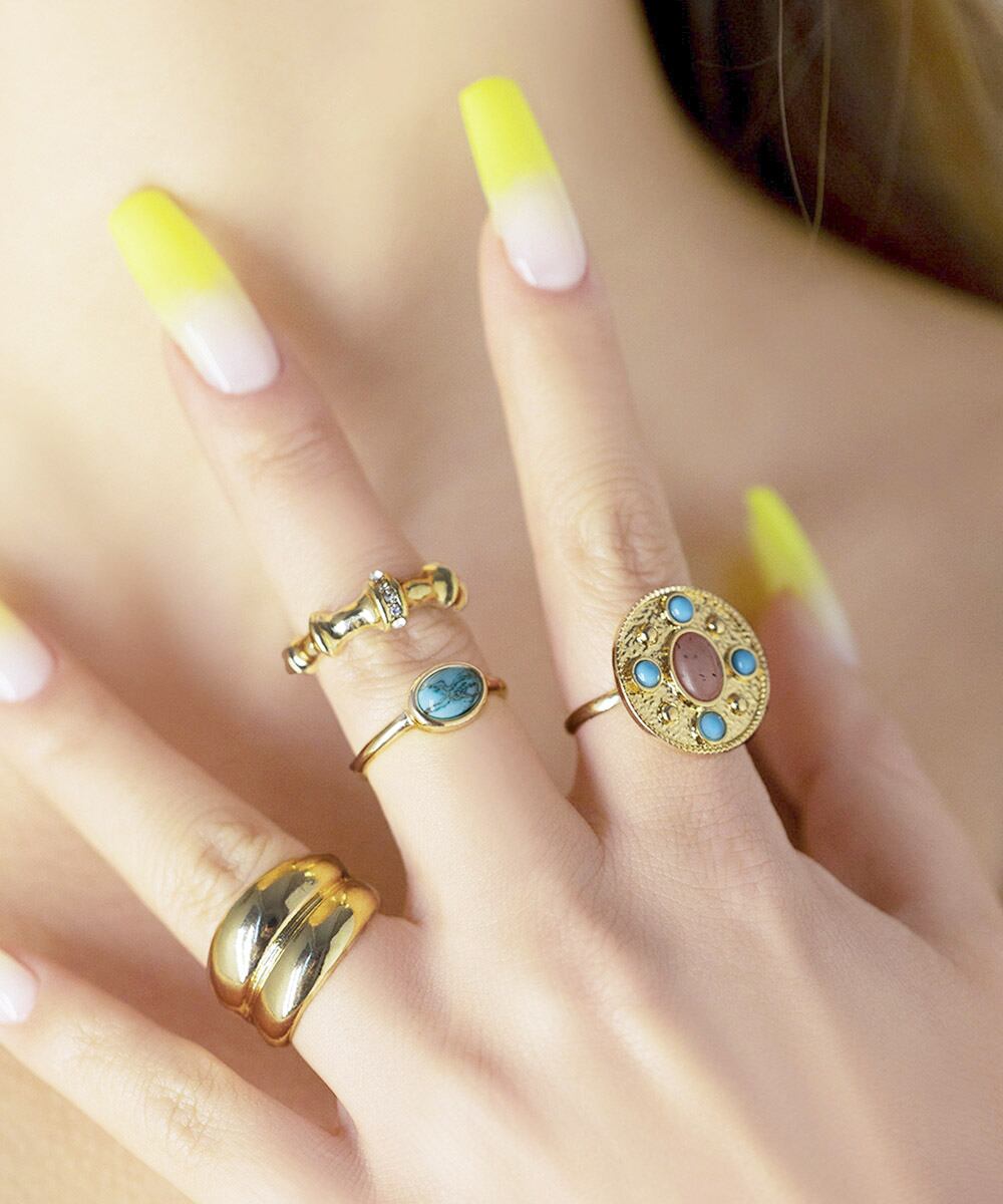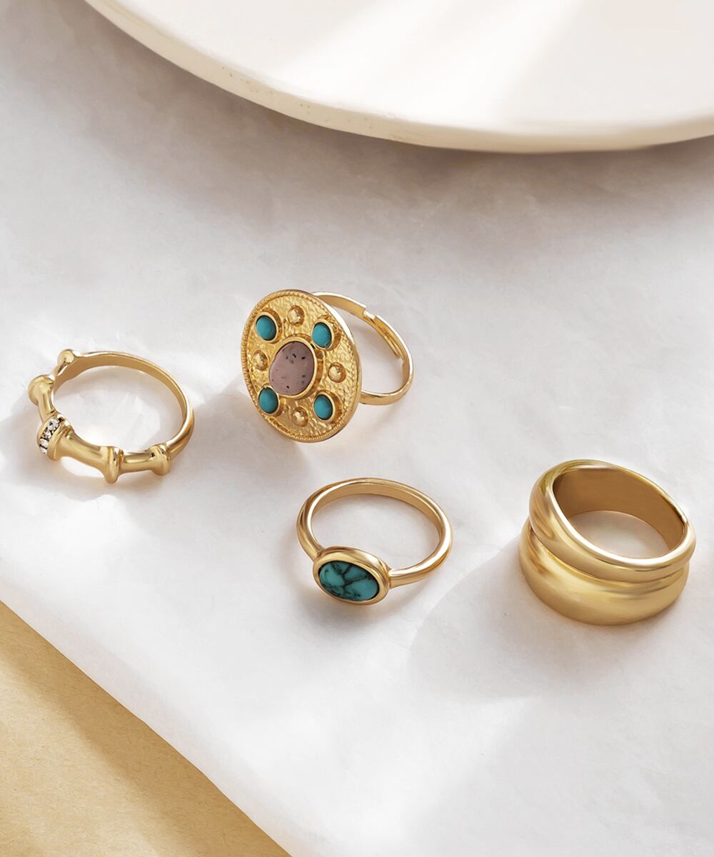 ターコイズリング 4ピースリング レディース 重ね付け 韓国風 アクセサリー おしゃれファッション小物 カジュアル
