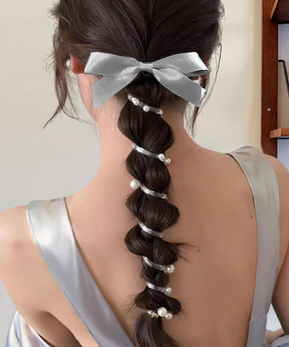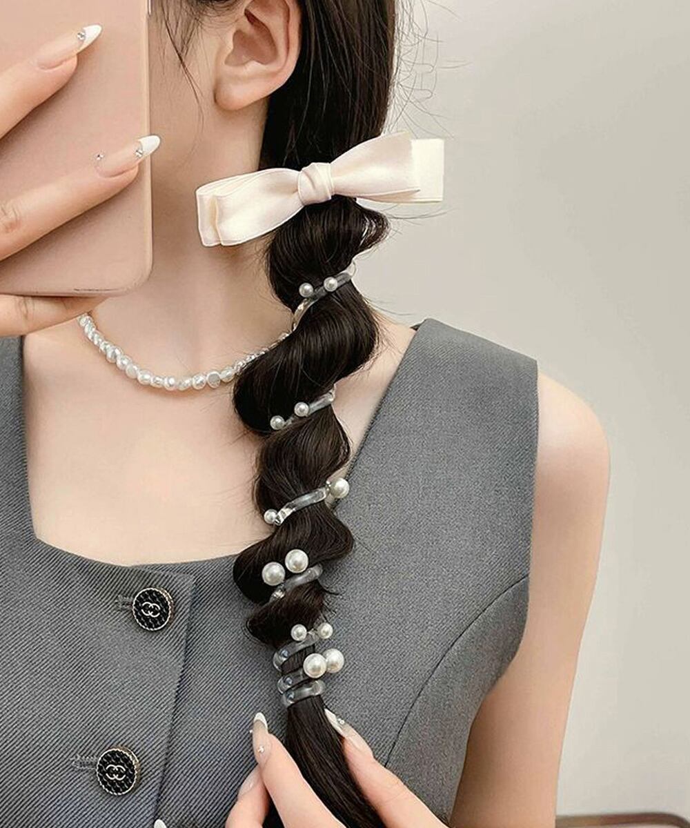 髪にくるくる巻き付けるだけで、ポニーテールや三つ編みをぐっと印象的に演出してくれる。