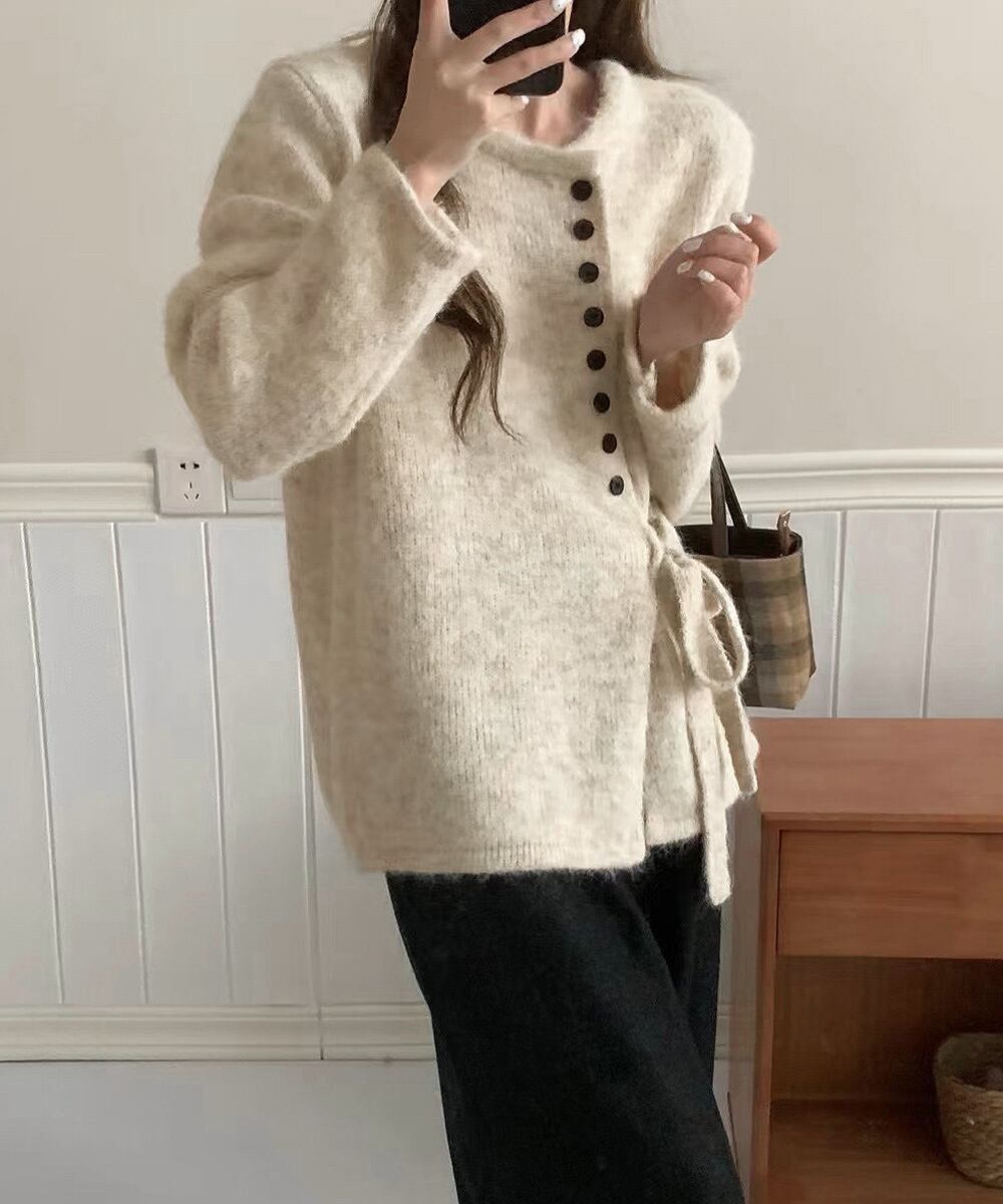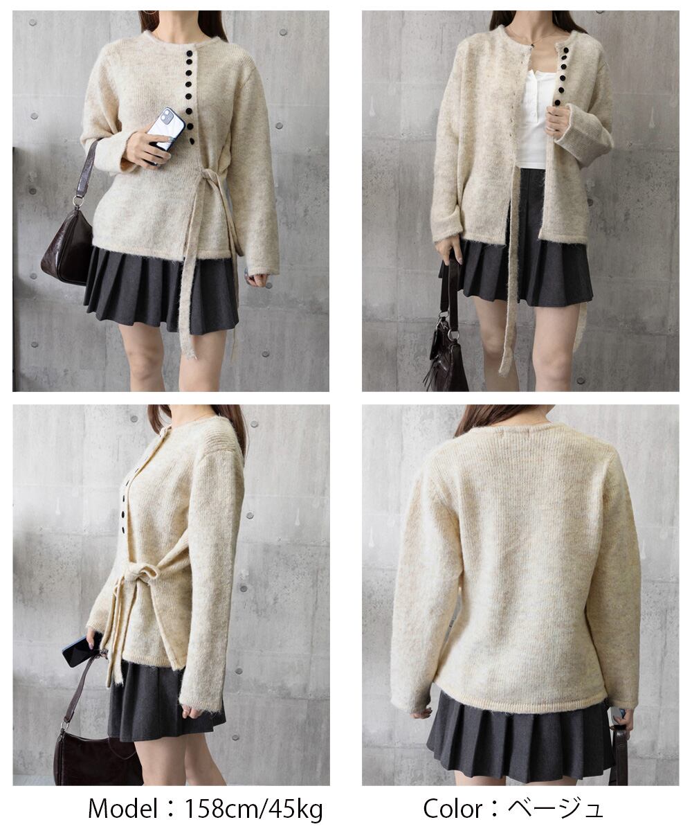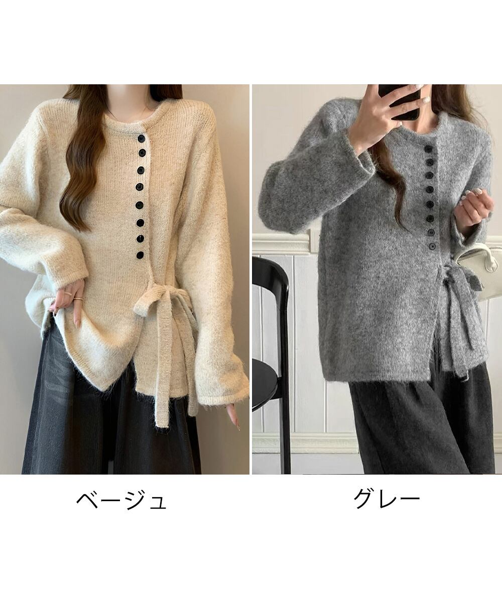 【日本倉庫即納】 サイドリボンニットトップスボタンデザイン