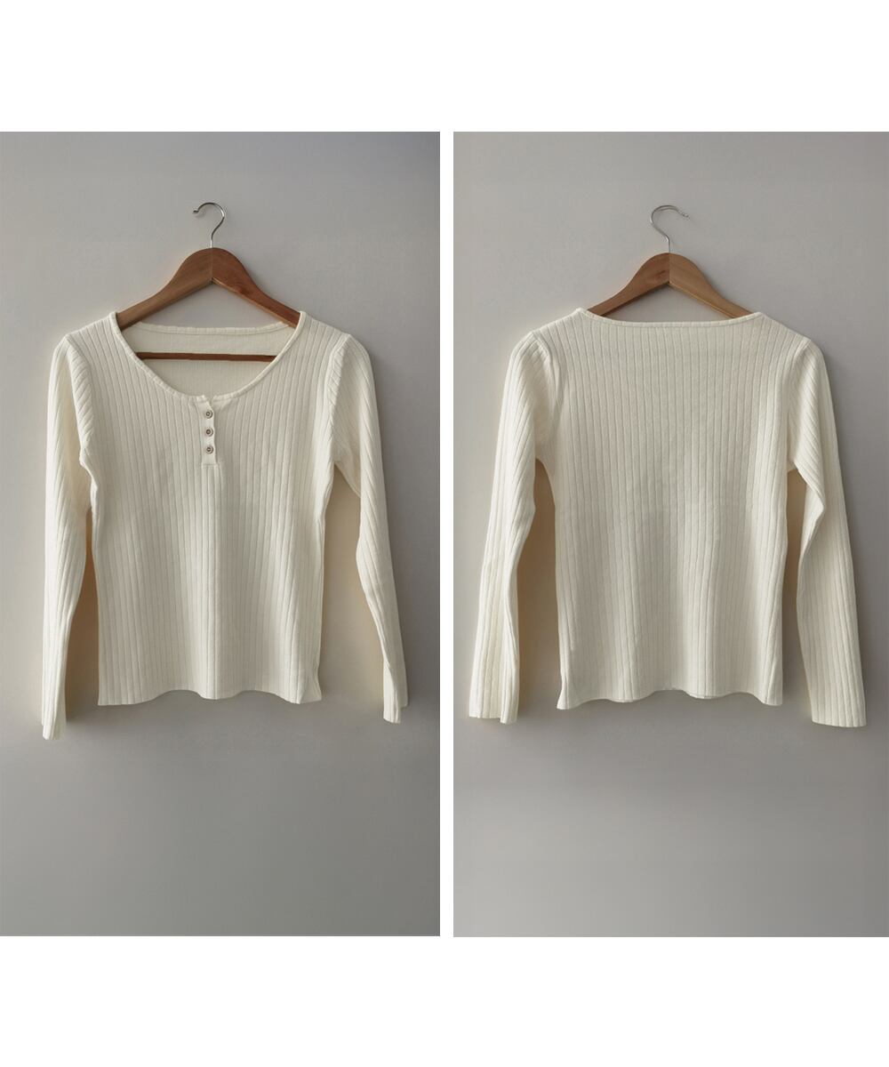 1枚でも重ね着でも着回し上手なリブニットトップス。