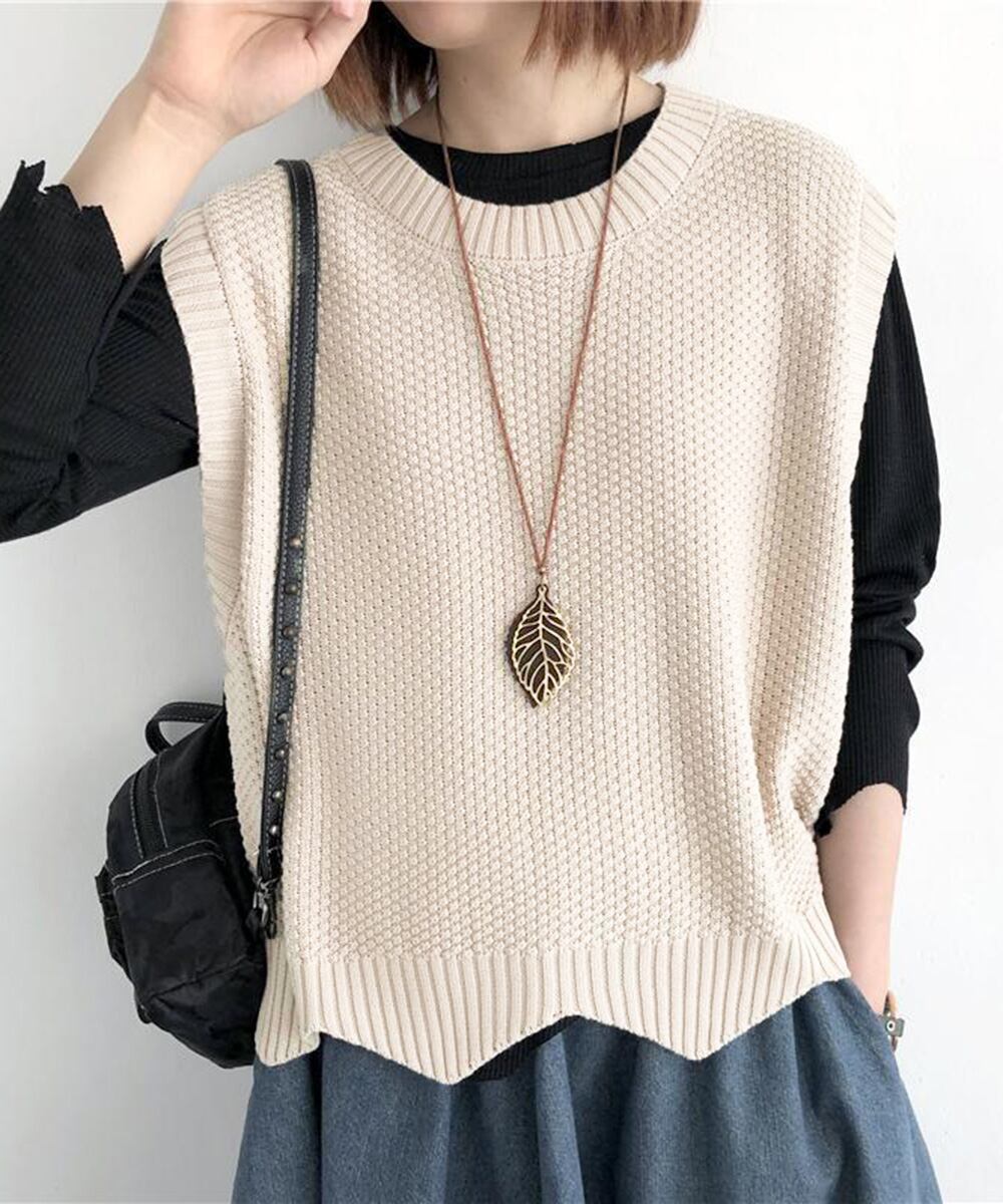 【日本倉庫即納】 ニットベスト ゆったり 重ね着 春秋冬服