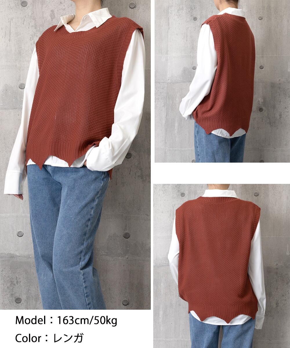 不規則な裾デザインで、シンプルな中に個性をプラスしてくれるニットベスト。