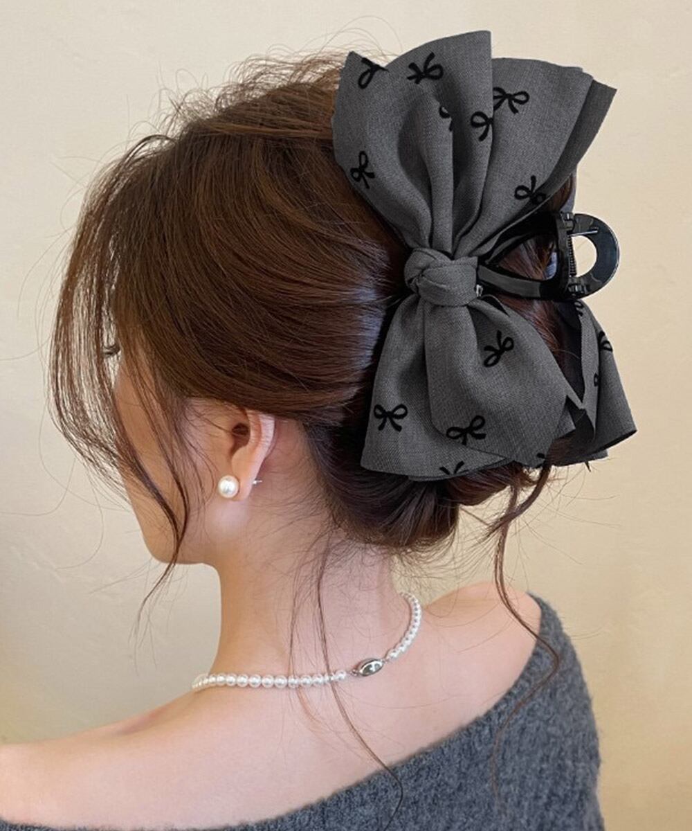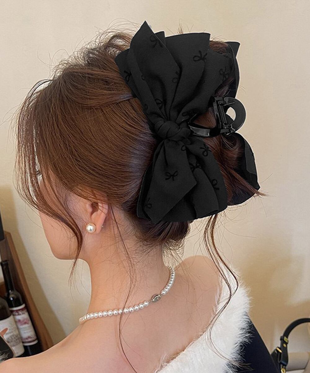 エレガントなリボンモチーフの大きめヘアクリップ。