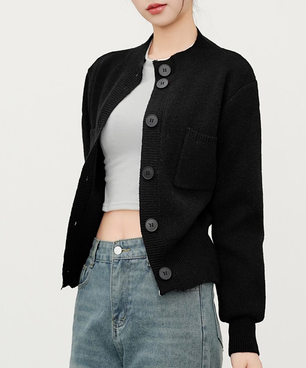 【日本倉庫即納】 ショート丈ニットカーディガンポケット付き