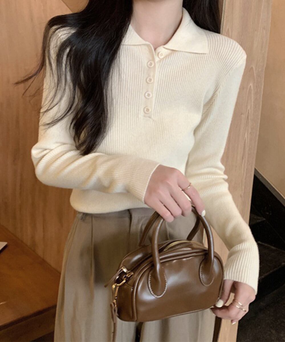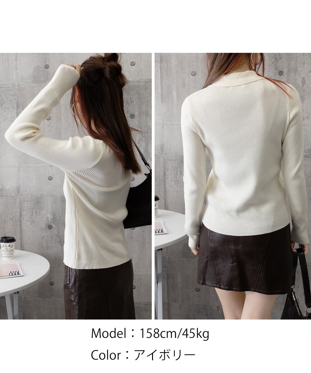 【日本倉庫即納】 ポロリブニットトップス ベーシック春秋服
