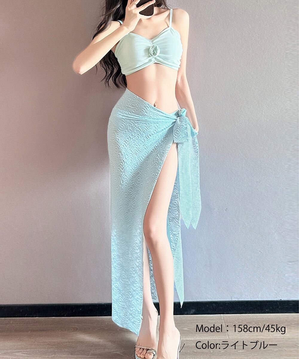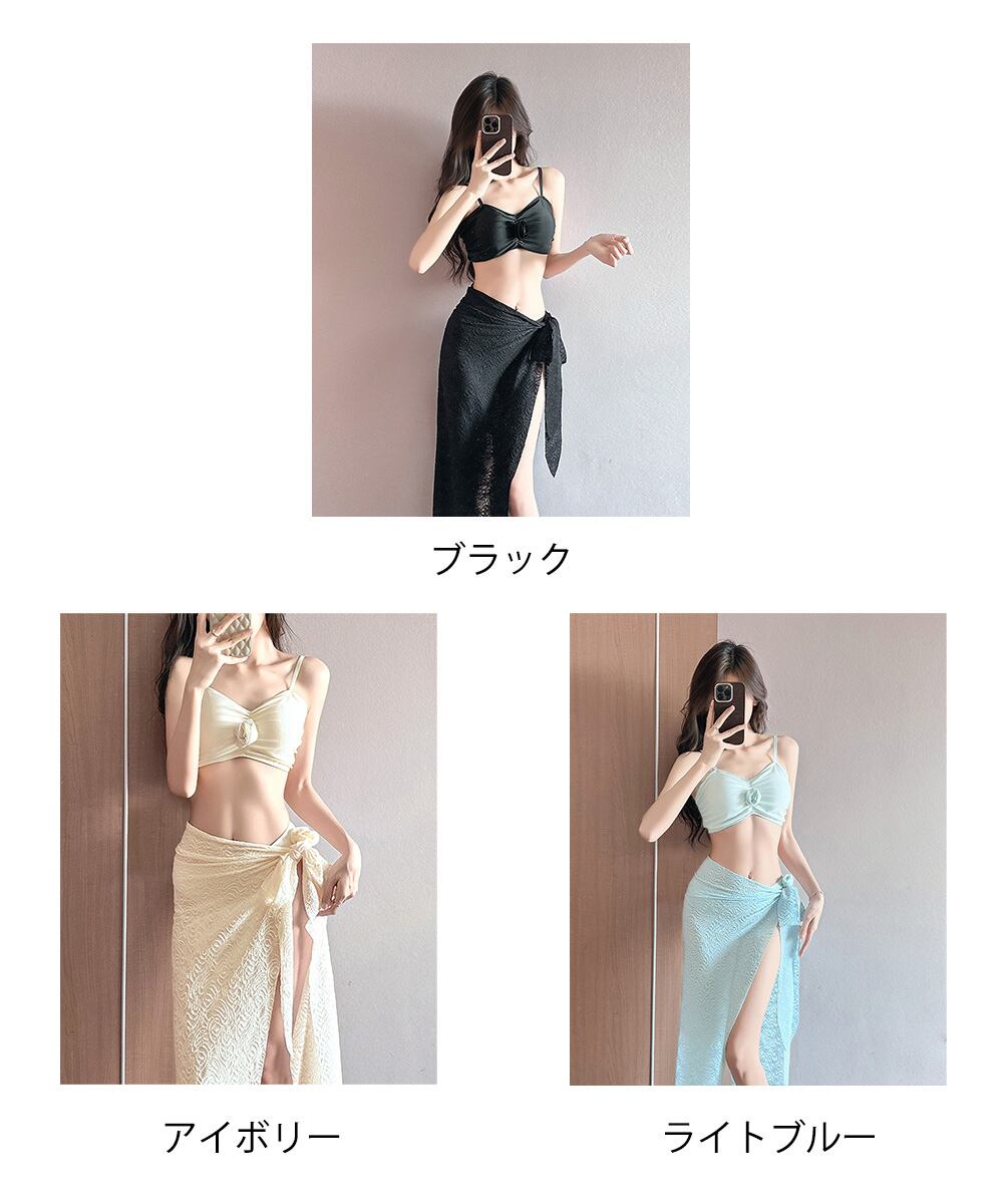【日本倉庫即納】 ビキニ 水着3点セットパレオ付き 韓国風