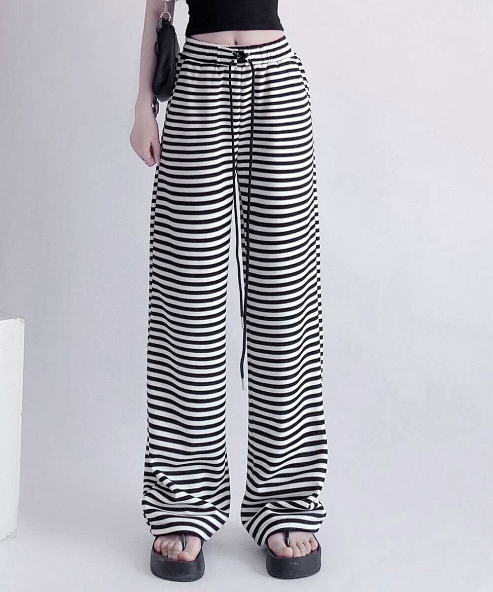 【日本倉庫即納】 リラックスボーダーパンツウエスト紐韓国風