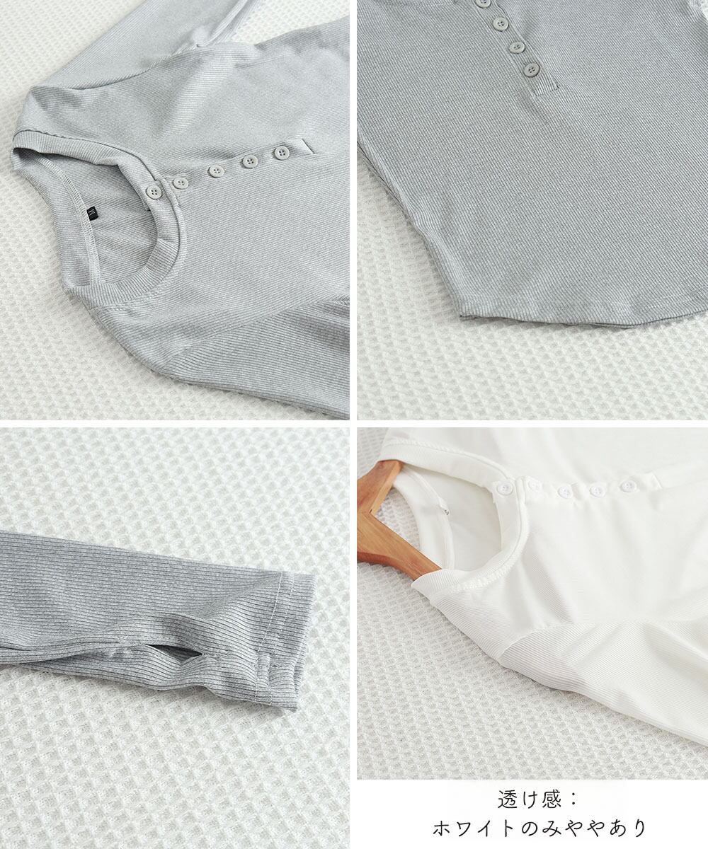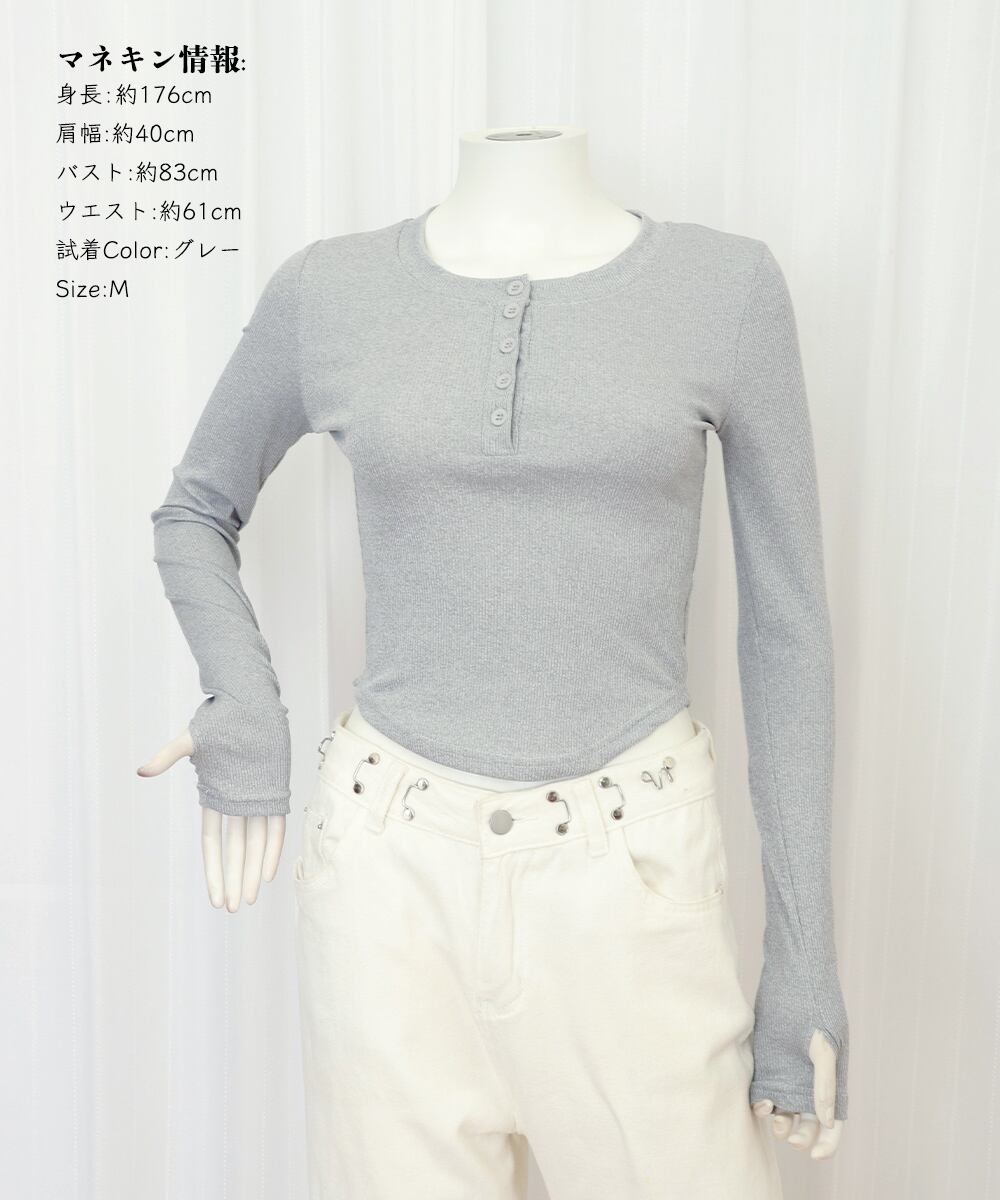 【日本倉庫即納】 長袖Tシャツ レディース ボタン 無地