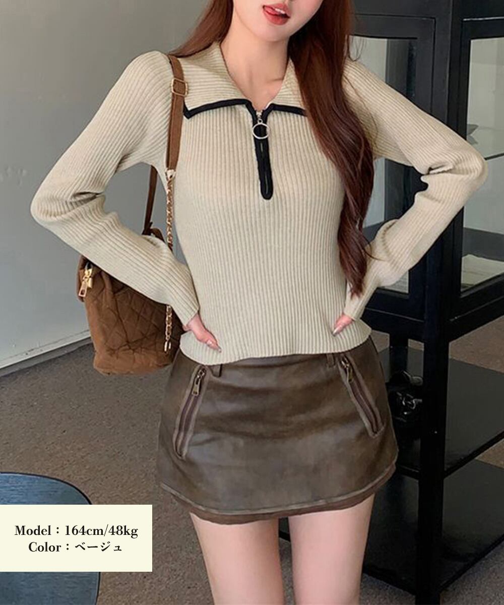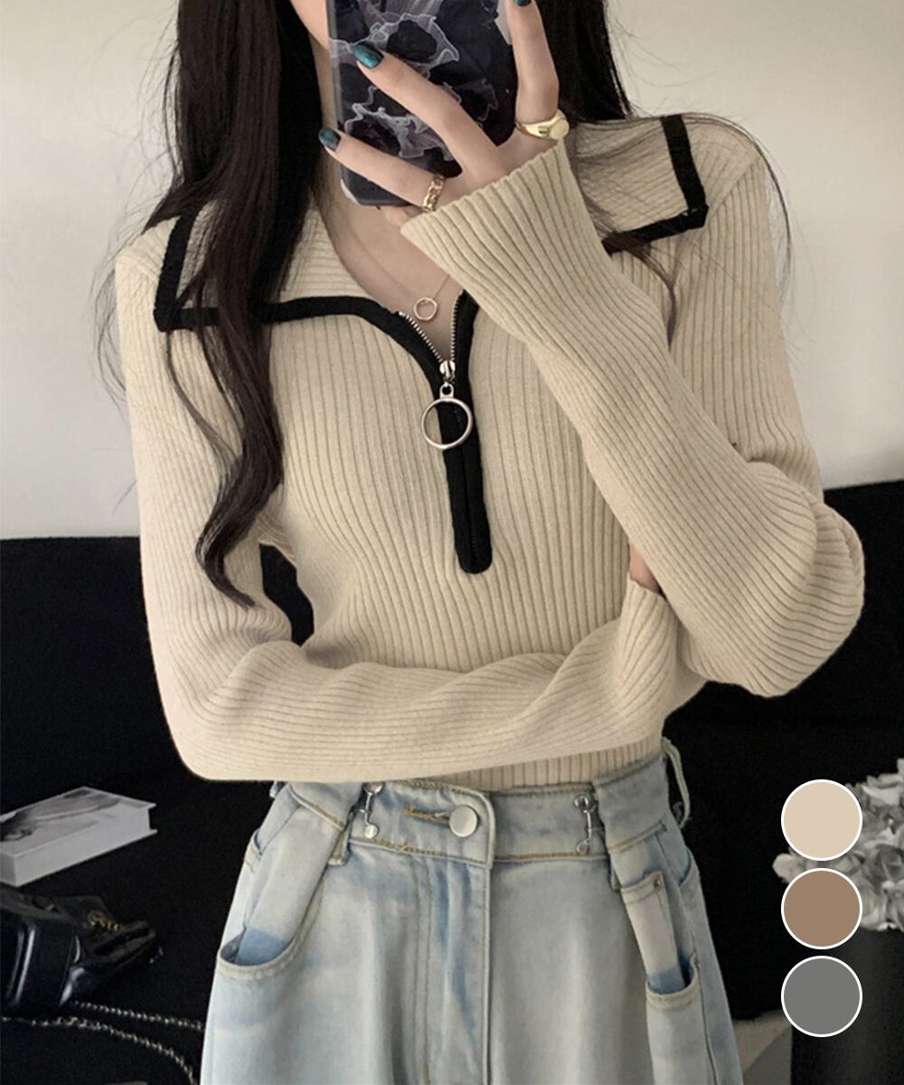 【日本倉庫即納】 ニットトップス ファスナー付き 無地