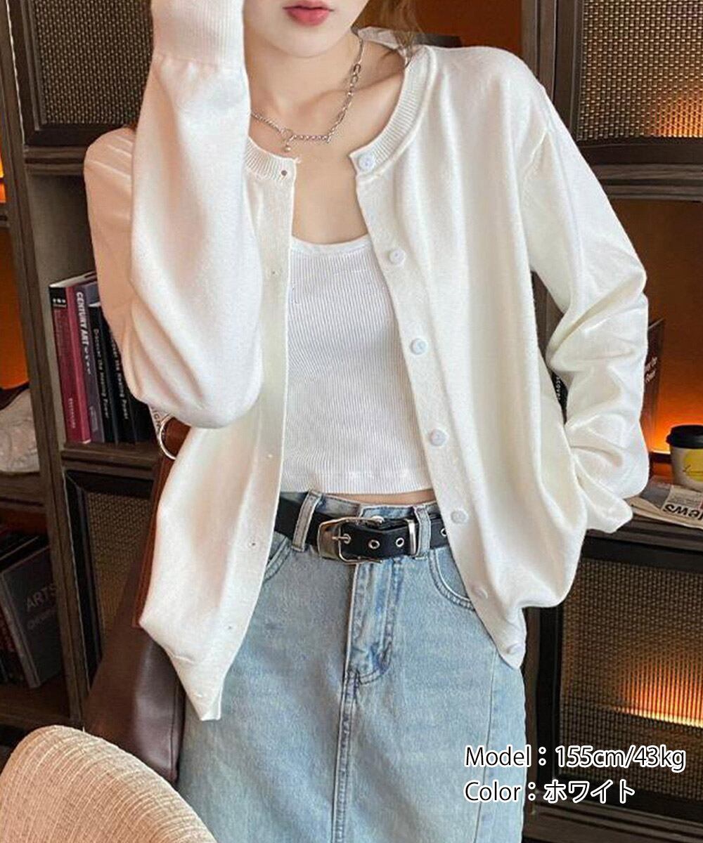シンプルで着回し力抜群の長袖ニットカーディガン。