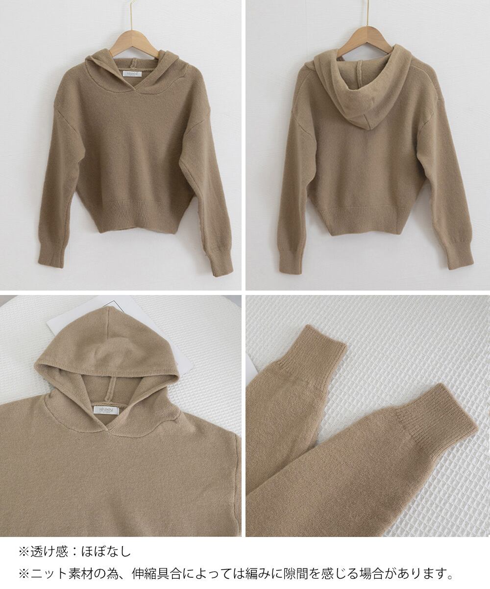 レディース 大人可愛い ショート丈フーディー シンプル ニットプルオーバー おしゃれ 無地セーター 秋冬 ニットトップス