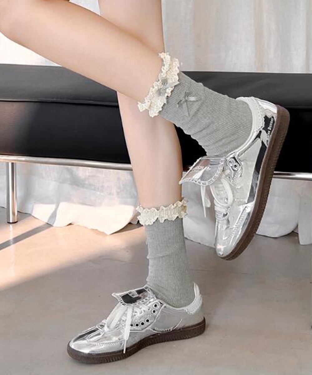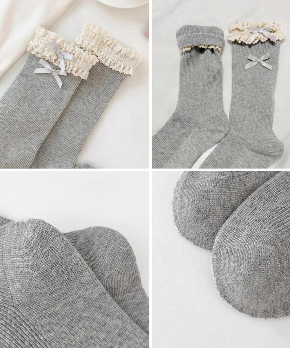 上品なレースフリルと小さなリボンが愛らしいソックス。