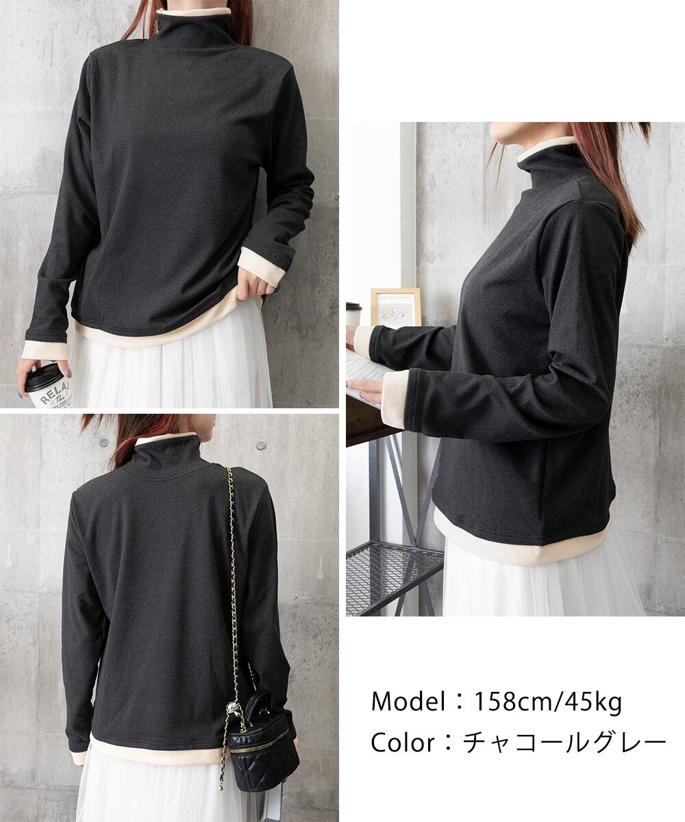【日本倉庫即納】 ハイネックトップス レイヤード風 長袖T