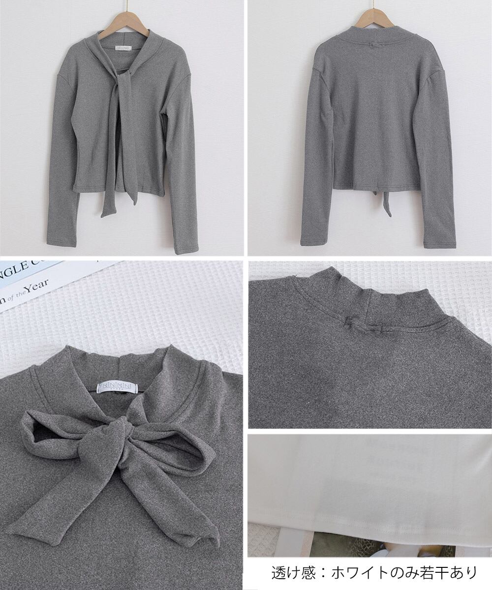【日本倉庫即納】 リボンタイ付きトップス ボウタイtシャツ