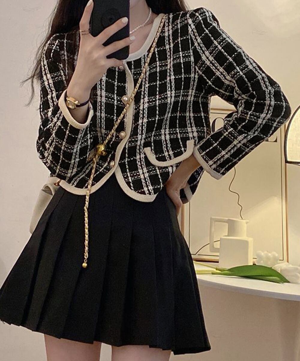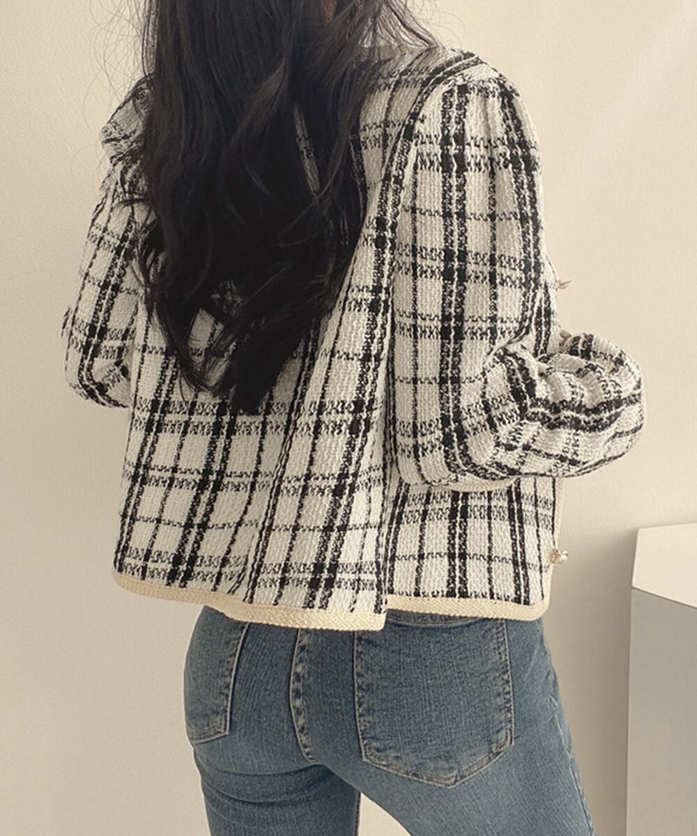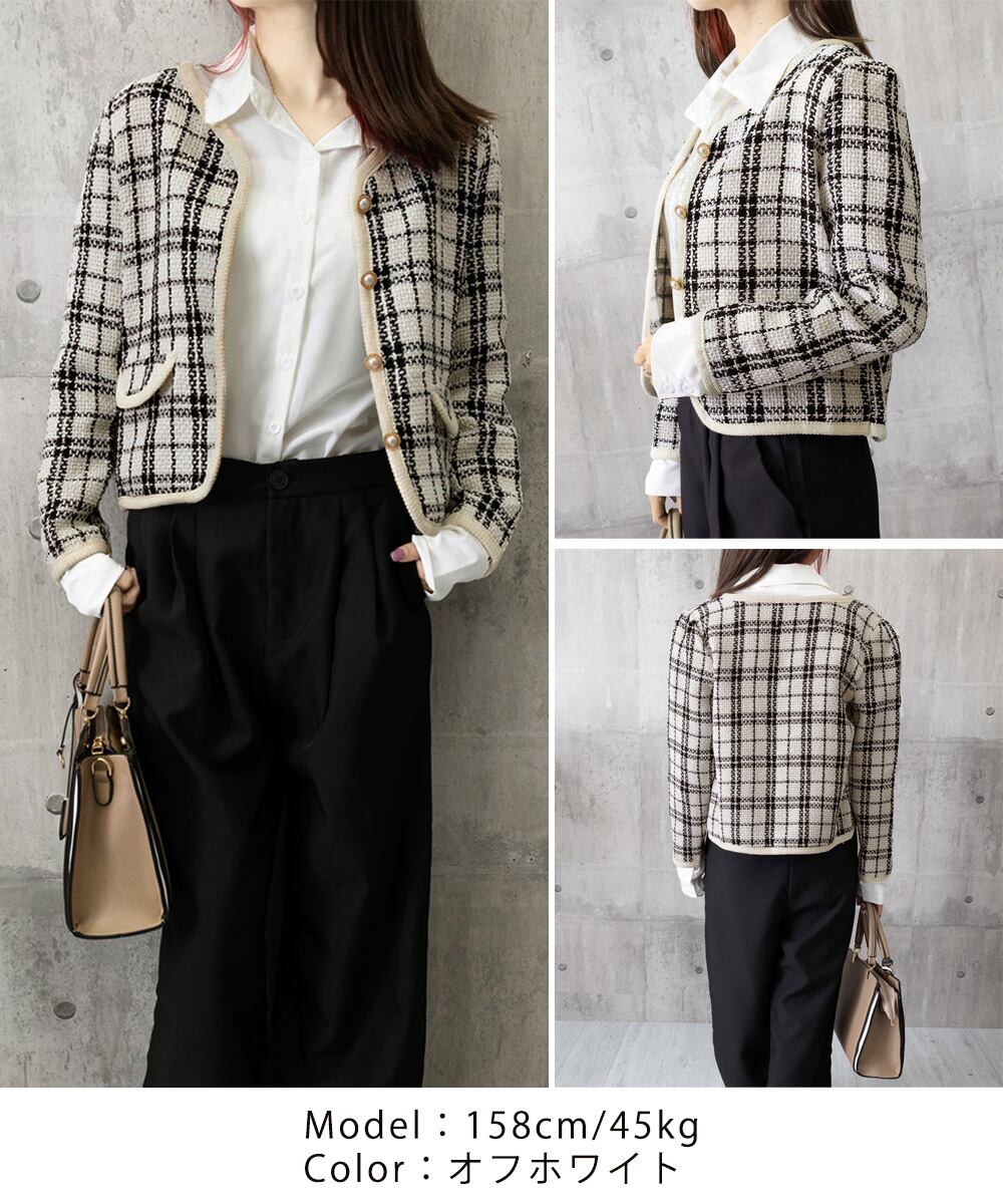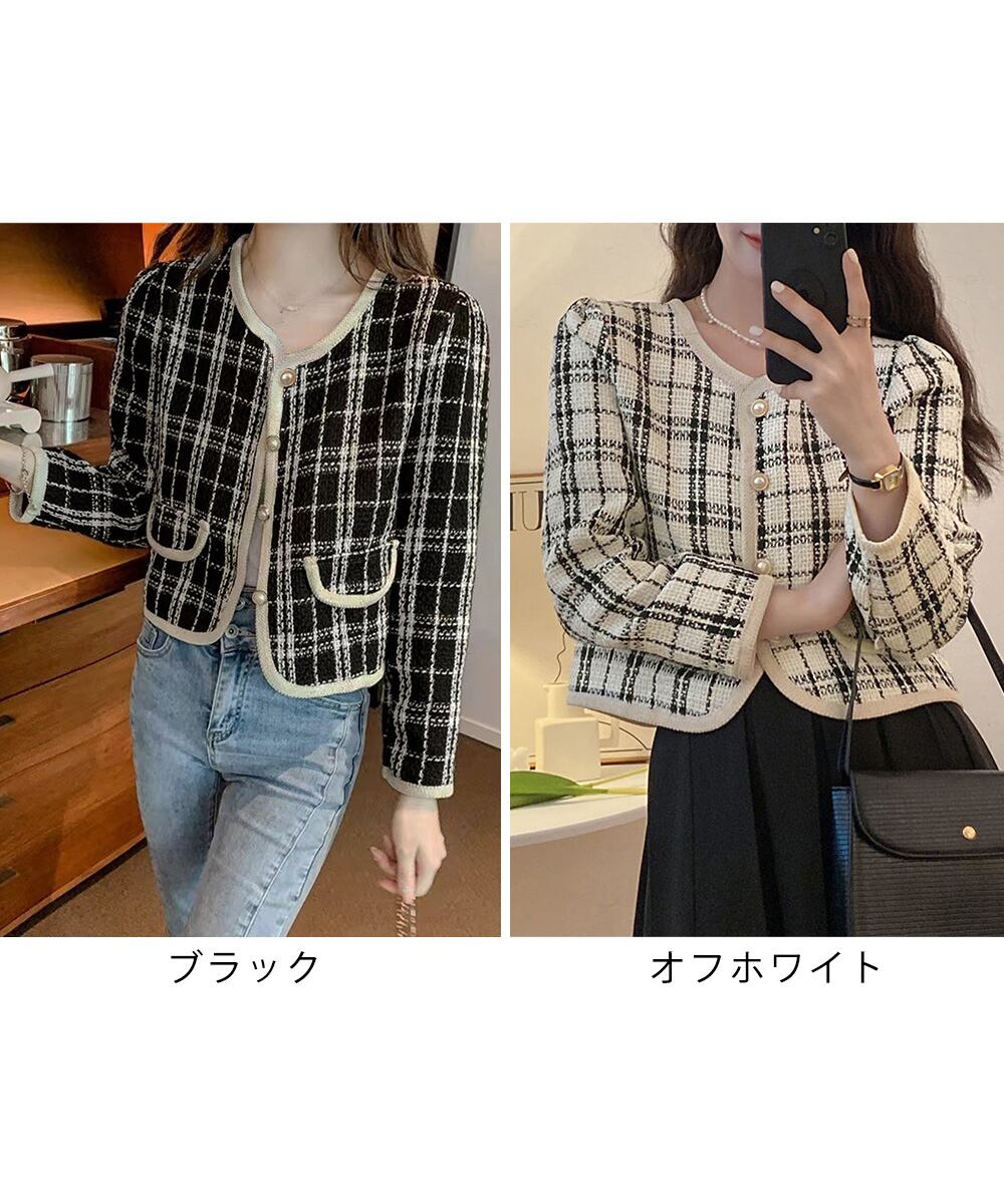 【日本倉庫即納】 韓国風ツイードジャケット ライトアウター