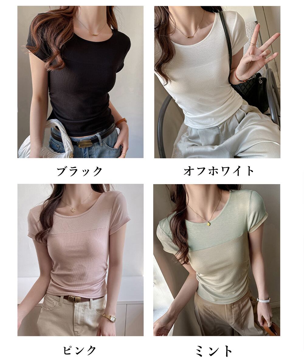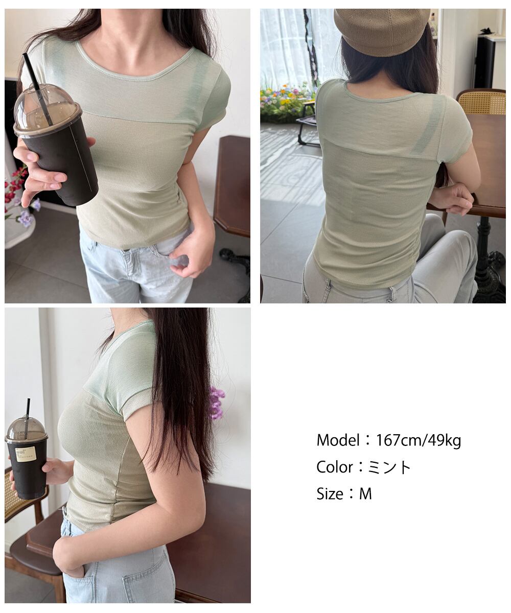 【日本倉庫即納】 リブTシャツ 異素材切り替えカットソー