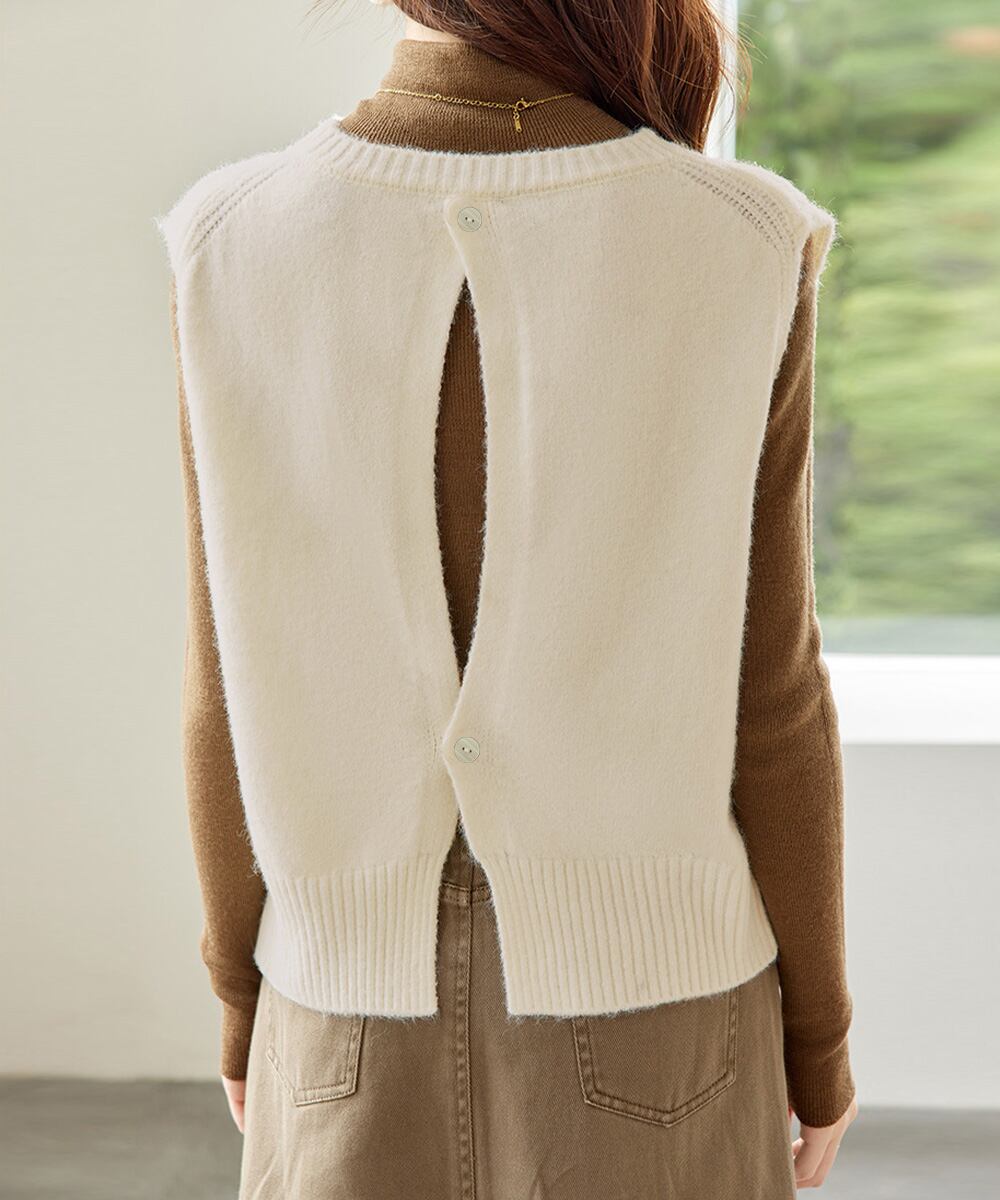 【日本倉庫即納】 ケーブル編み ニットベスト バックボタン