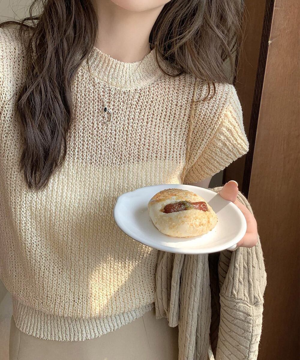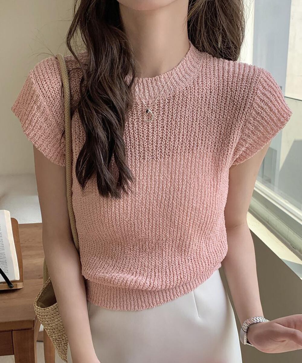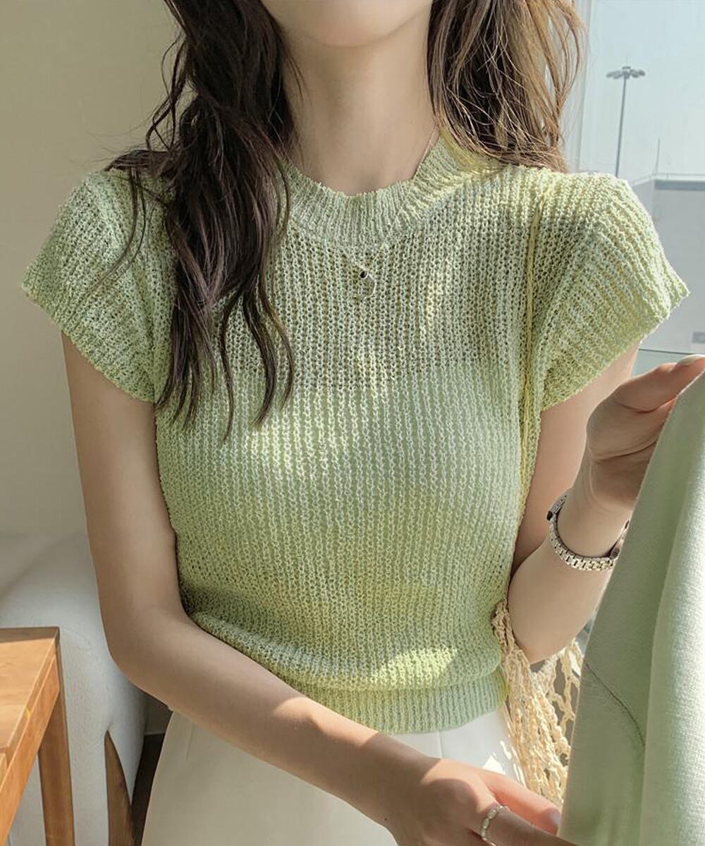 【日本倉庫即納】 フレンチスリーブサマーニットトップス夏服
