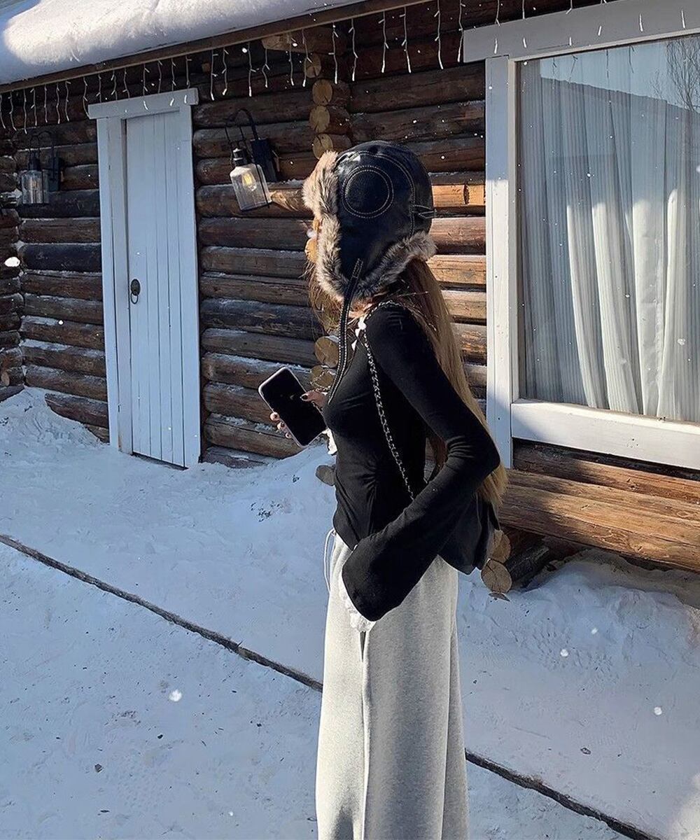 スウェットの中に合わせれば、首元や手元からレースがさりげなくのぞき、ガーリーなアクセントに。