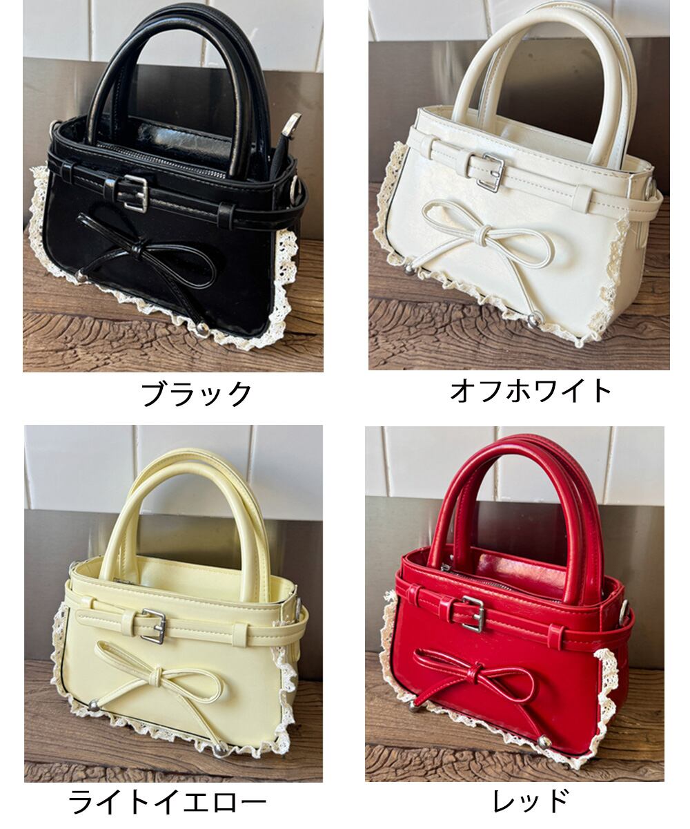ハンドバッグ スクエア 2way 肩掛けバッグ リボンデザイン 大人かわいい手提げ鞄 レース 斜め掛けカバン フェミニン