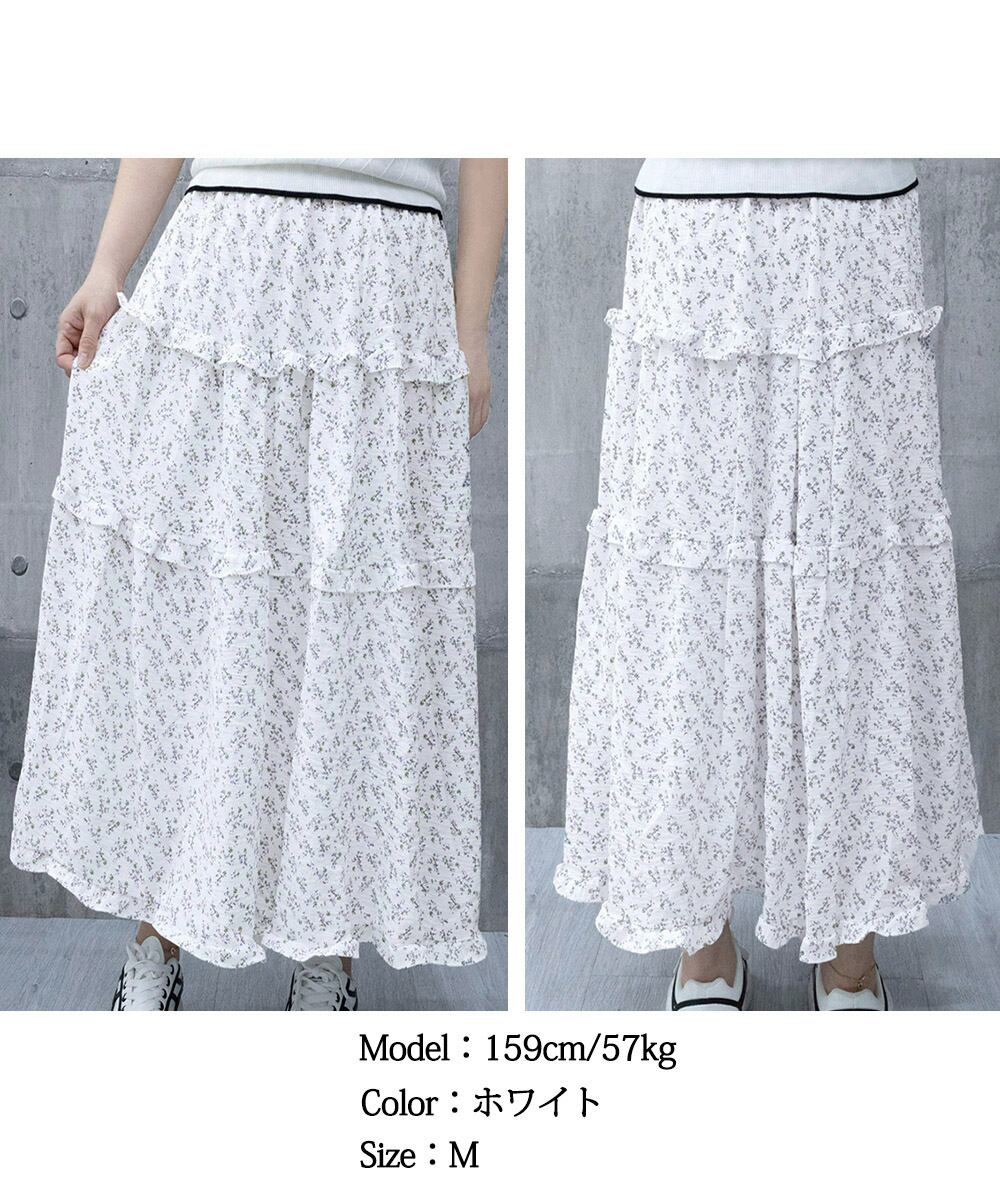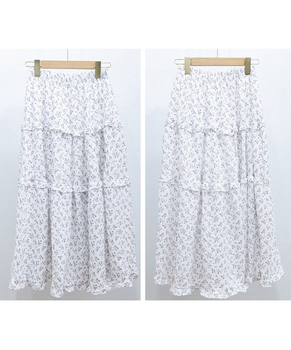 【日本倉庫即納】 フリルティアード 小花柄 ロングスカート