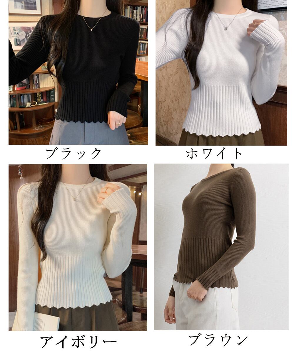 シンプルながらも女性らしさを引き立てるデザインが魅力のリブニットトップス