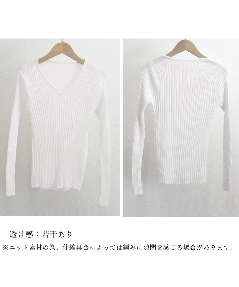 シンプルで上品な印象を与えるリブ編みVネックトップス