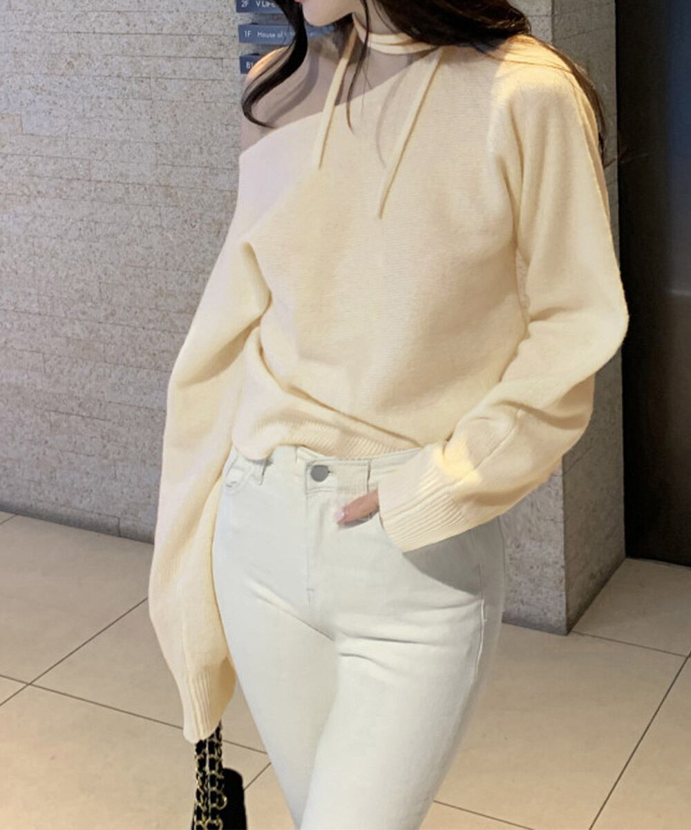 【日本倉庫即納】 オフショルダーニットトップス春秋きれいめ