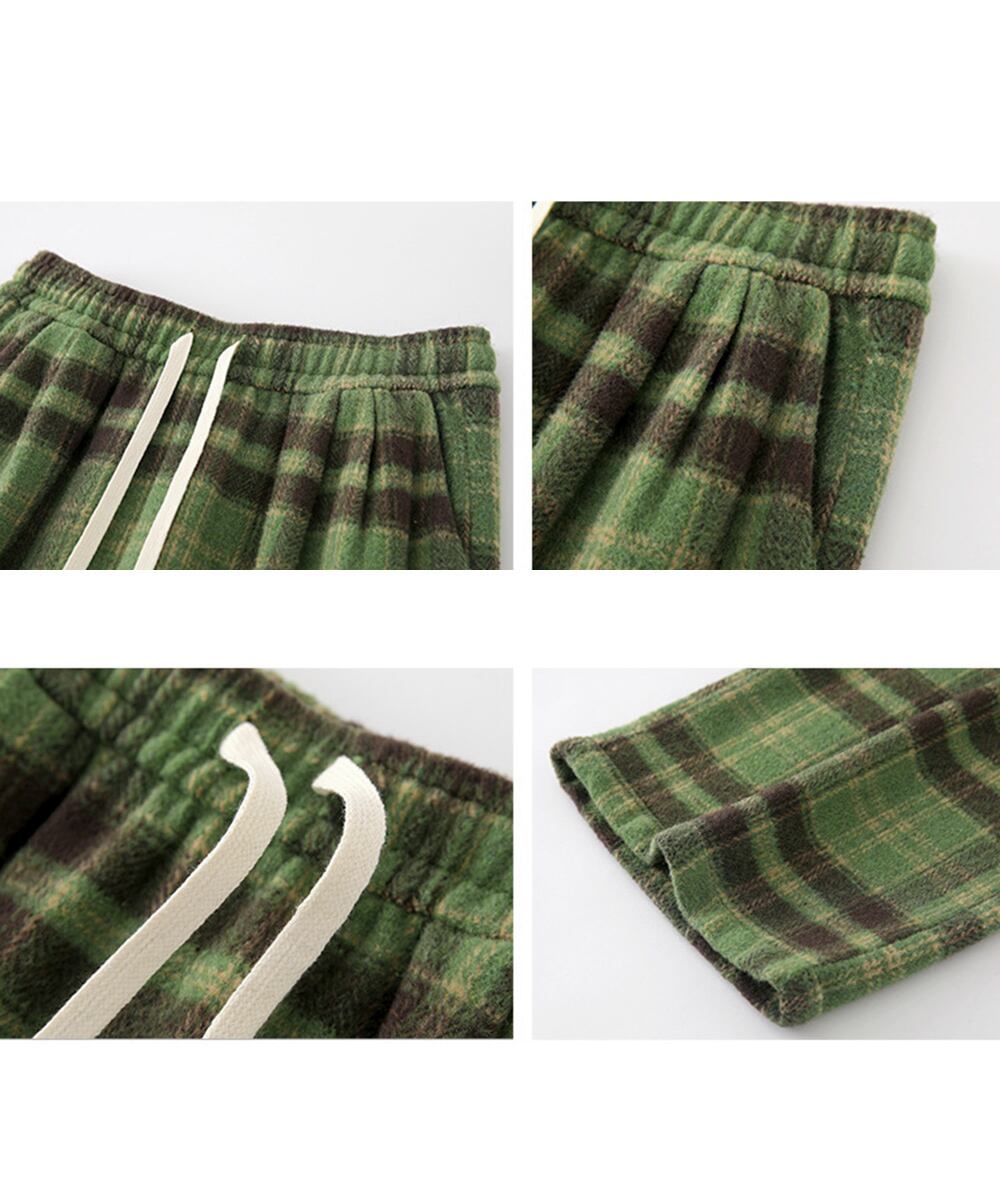 【日本倉庫即納】 チェック柄パンツハイウエストワイドパンツ