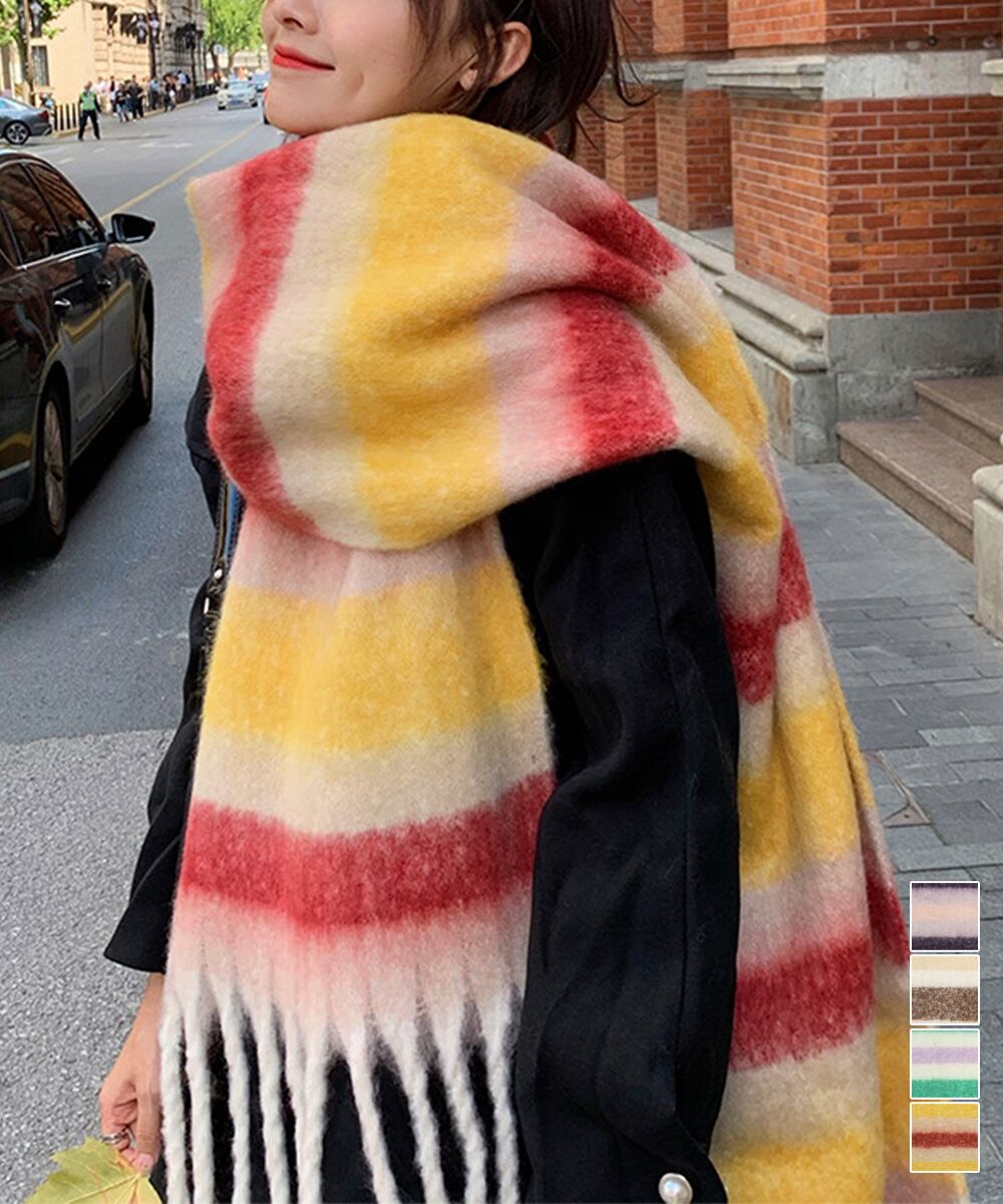 厚手の素材で作られた、ふんわりとした肌触りが心地よい大判マフラー