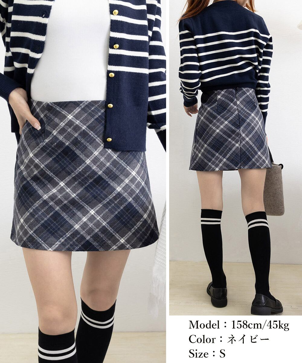 レトロなチェック柄が魅力のウールライクタイトミニスカート