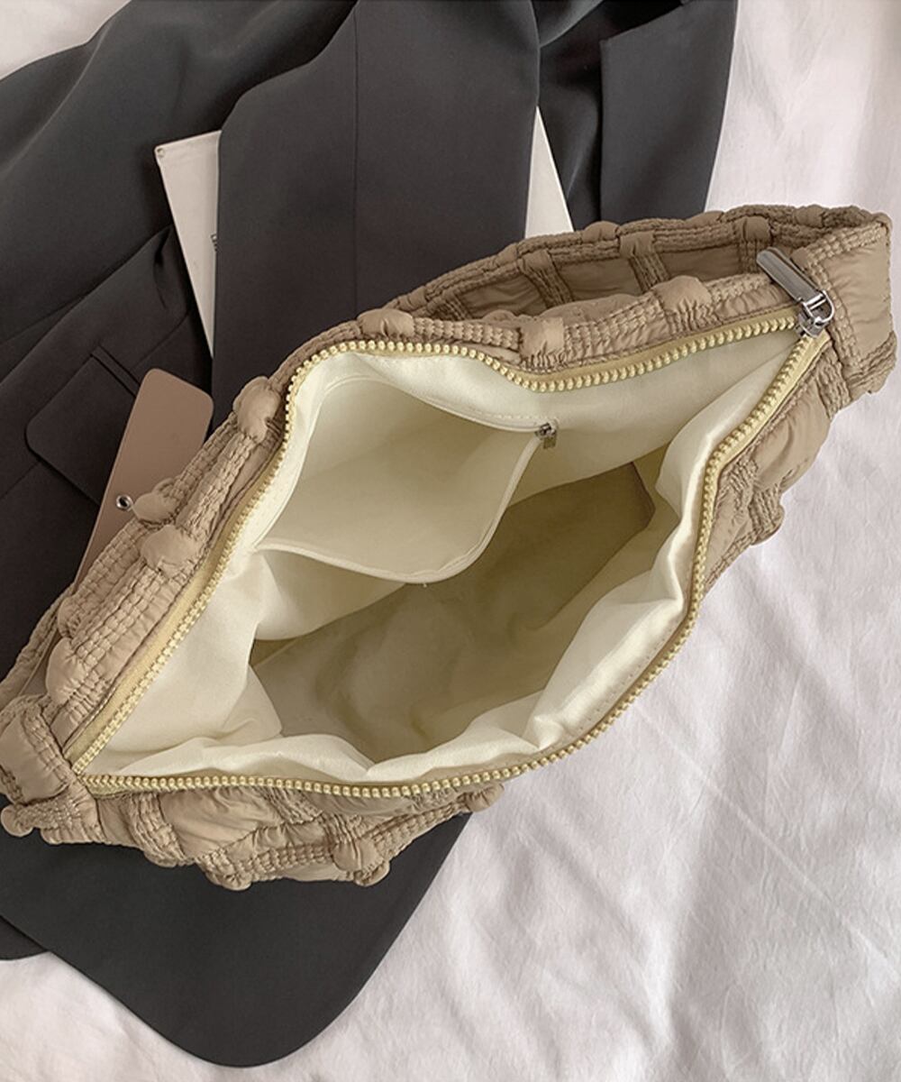 しっかりとしたキルティング加工が施された、ボリューム感のあるショルダーバッグ。