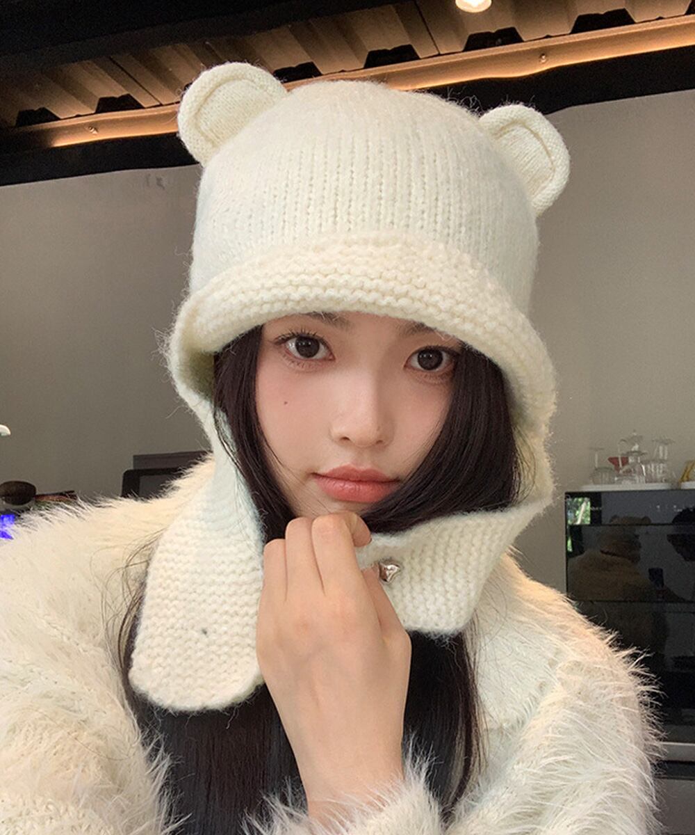 【日本倉庫即納】 くま耳ニット帽 レディース 韓国風