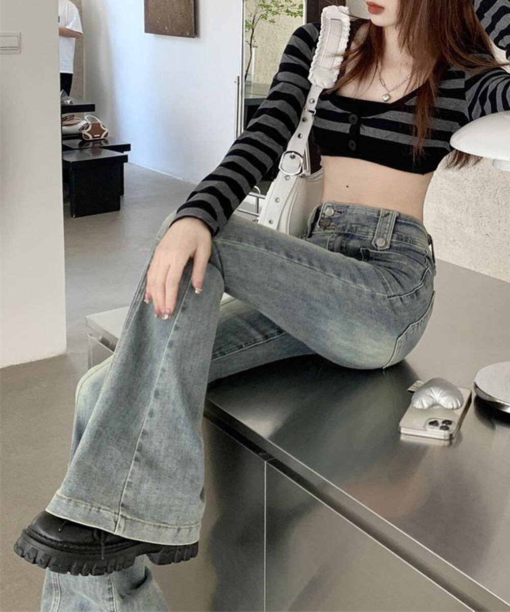 【日本倉庫即納】 セミフレアデニムパンツ ヴィンテージ風