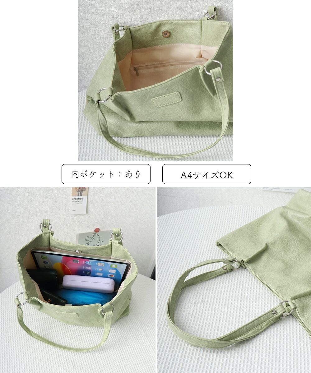 ハンドバッグ 合皮 大きめ 無地 a4対応 シンプル カジュアル 大人 オフィス 通勤通学 韓国ファッション鞄