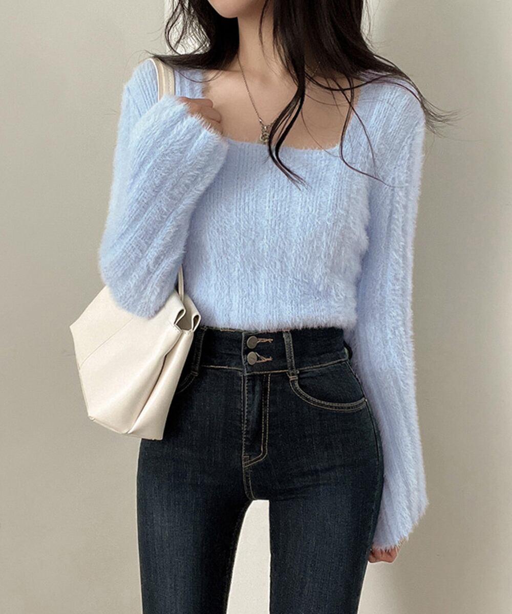 【日本倉庫即納】 ショート丈 シャギーニットトップス韓国風