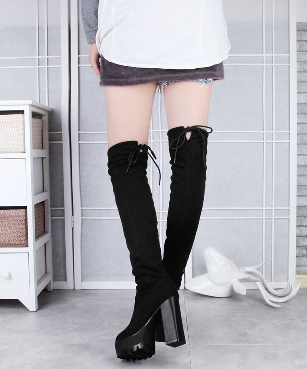 【日本倉庫即納】 ニーハイブーツ厚底 フィットロングブーツ