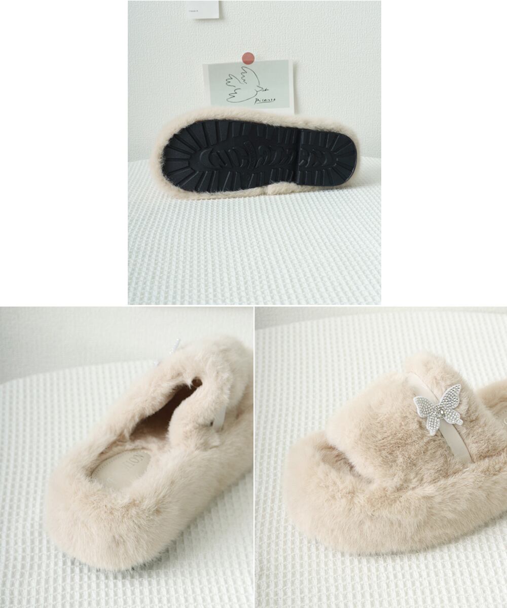 【日本倉庫即納】 厚底ファーサンダル 蝶々 スリッパ 秋冬