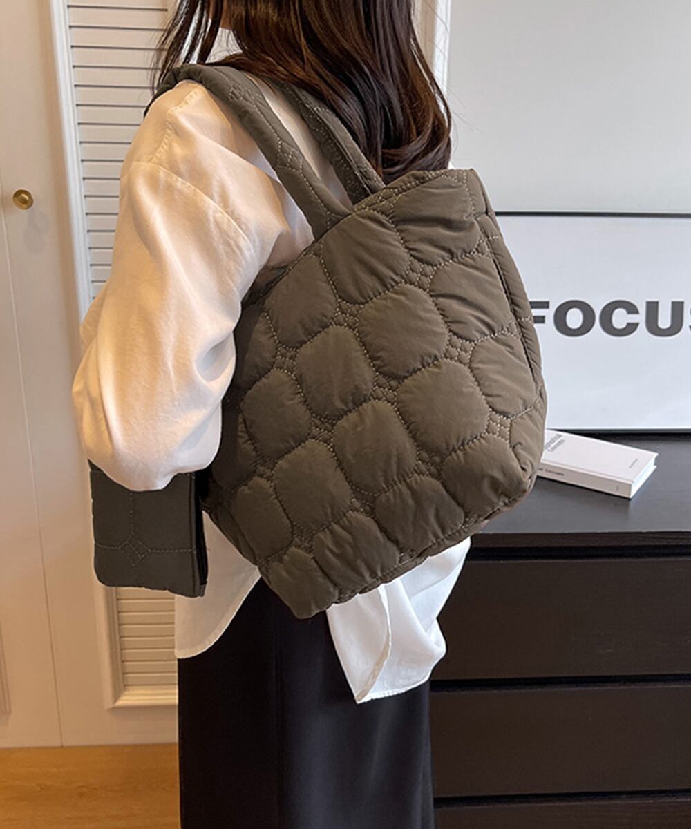 【日本倉庫即納】 韓国風キルティングトートバッグポーチ付き