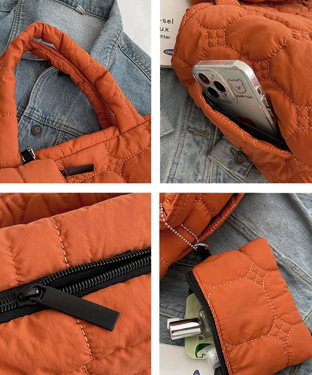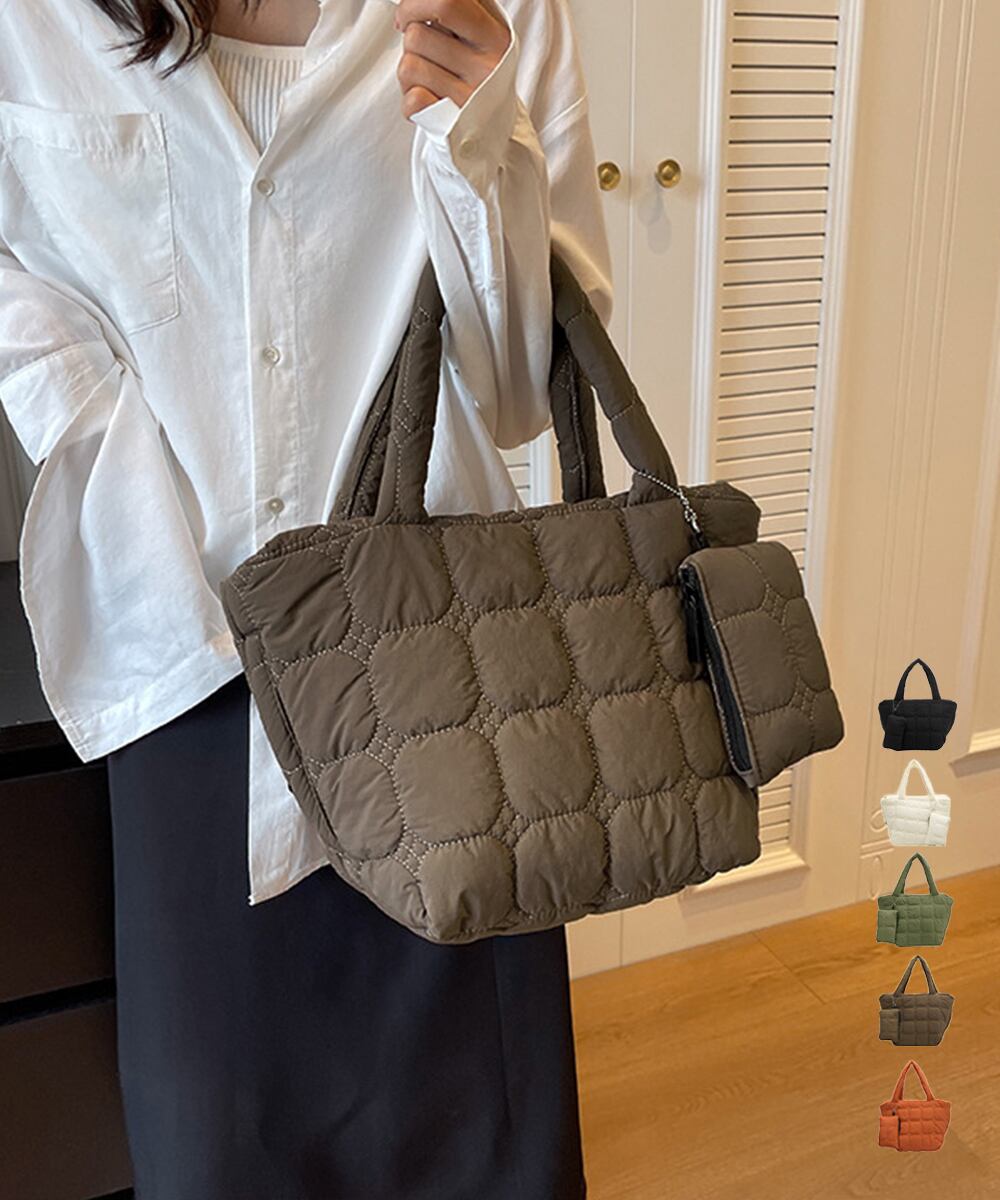 ふっくらとしたキルティング生地がシーズンライクなトートバッグとポーチの2点セット