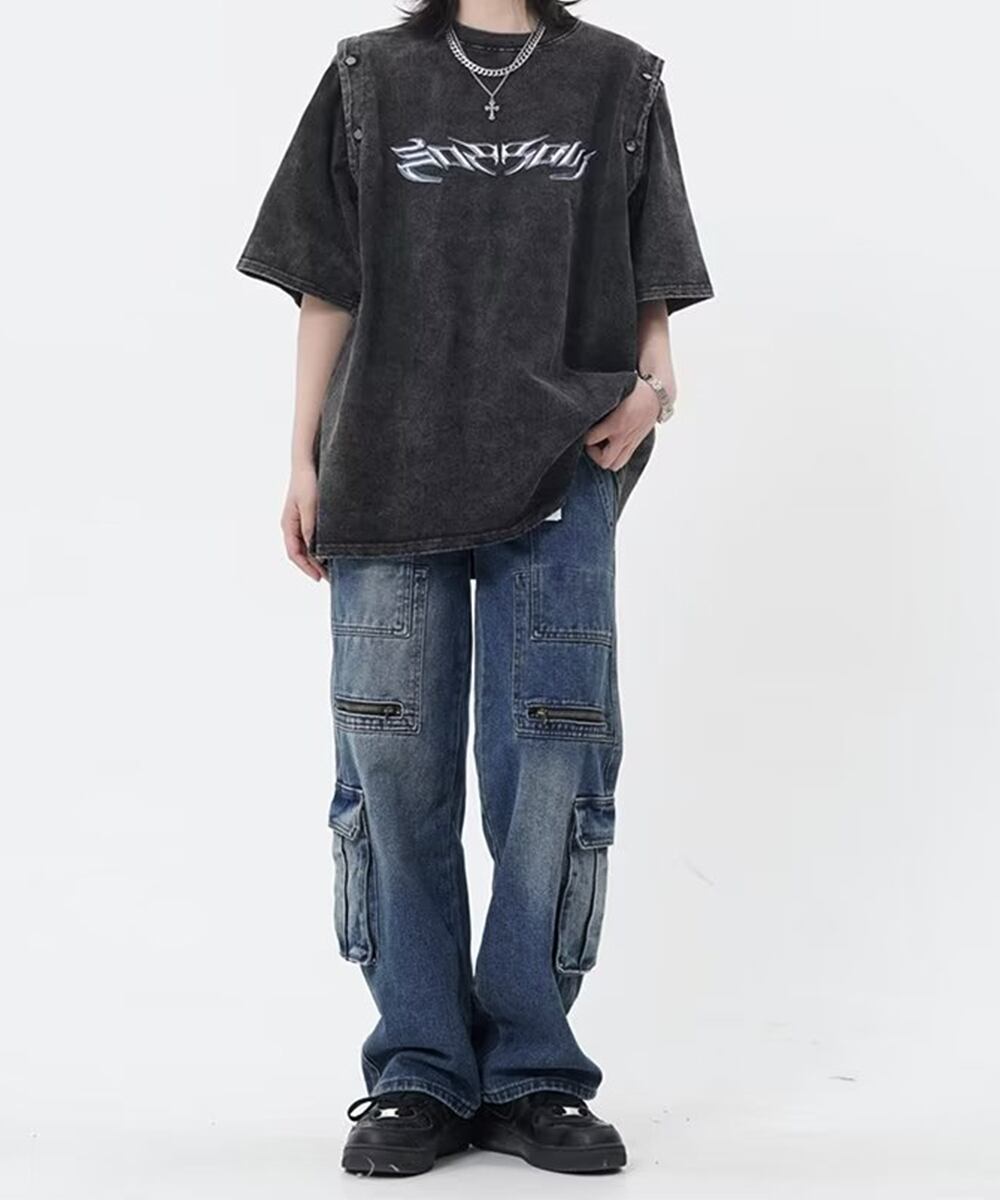 カーゴデニムパンツ 体型カバー デニム レトロデニム古着感