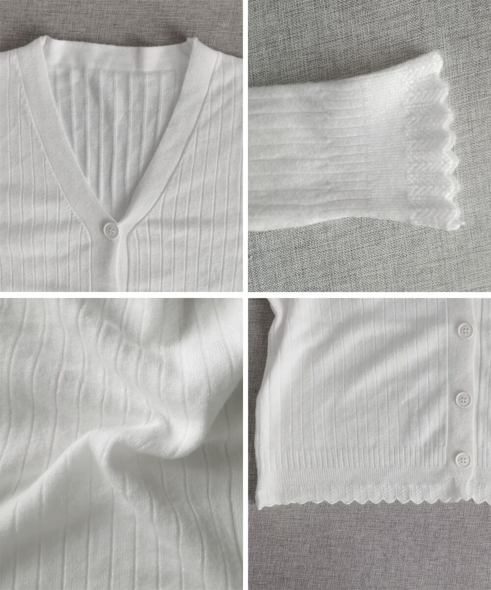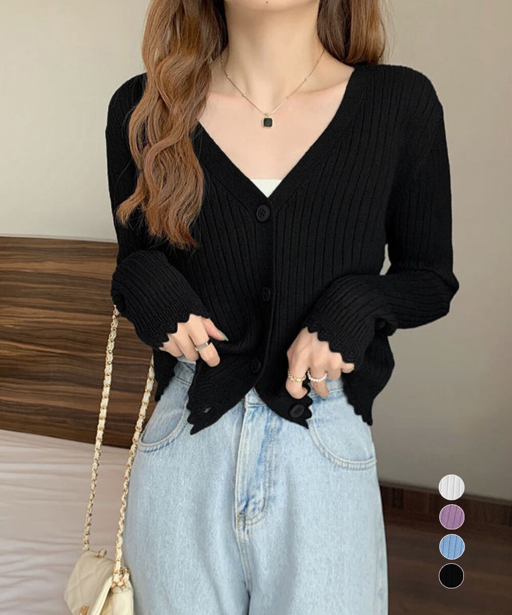 リブショートカーデ Vネック 長袖 きれいめ お出かけ アウター ショート丈 かわいい 大人カジュアル 通学 20代