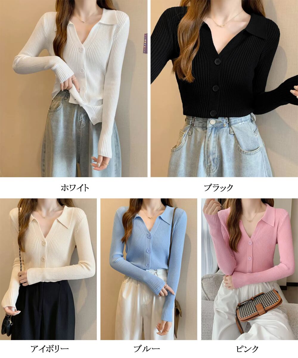 レディース カジュアル ニットウェア 襟付き ニットカーディガン 前開き 着回し おしゃれ 普段着ニットセーター