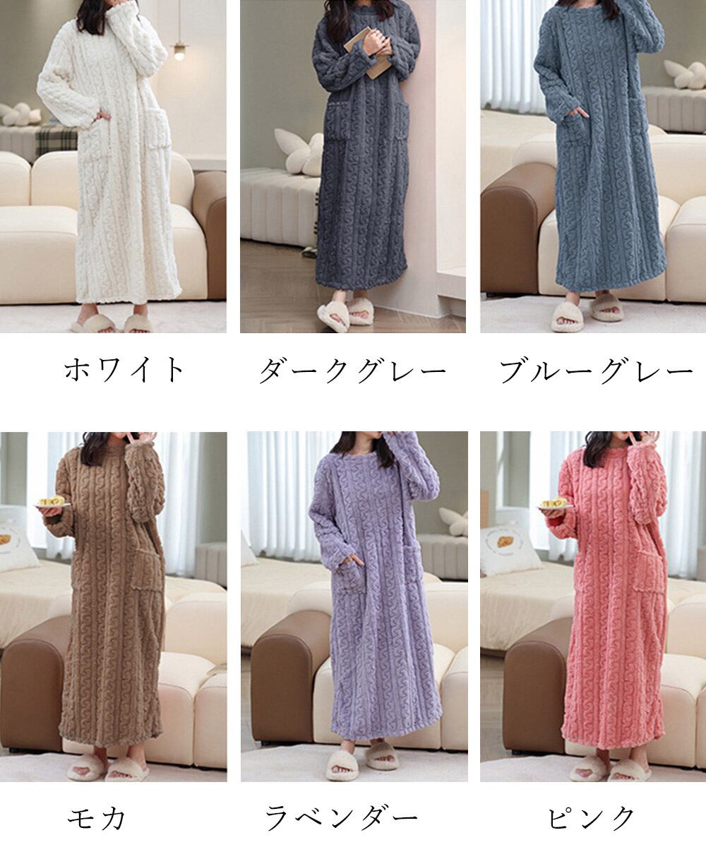 ケーブル柄ルームウェア もこもこ ナイトウェア ふわふわ 軽く暖かい 厚手部屋着 無地あったか寝間着 保温保暖 6色展開