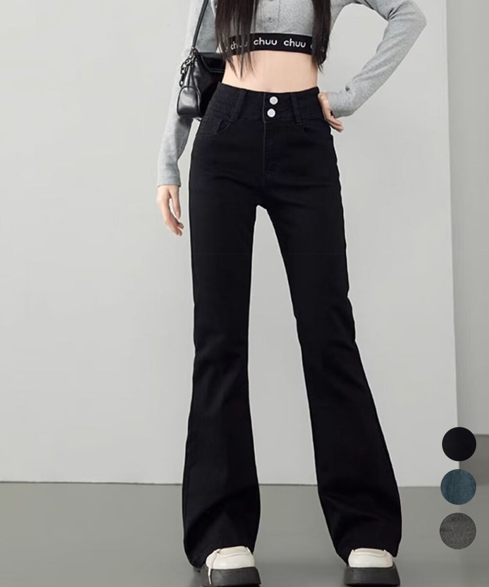 【日本倉庫即納】 セミフレアデニムパンツ 美脚デニムパンツ