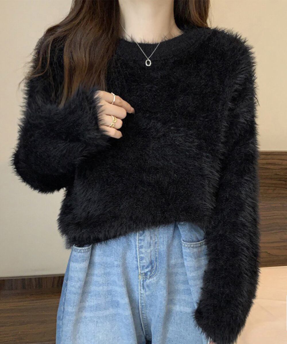 【日本倉庫即納】 ショート丈 シャギーニットトップス韓国風
