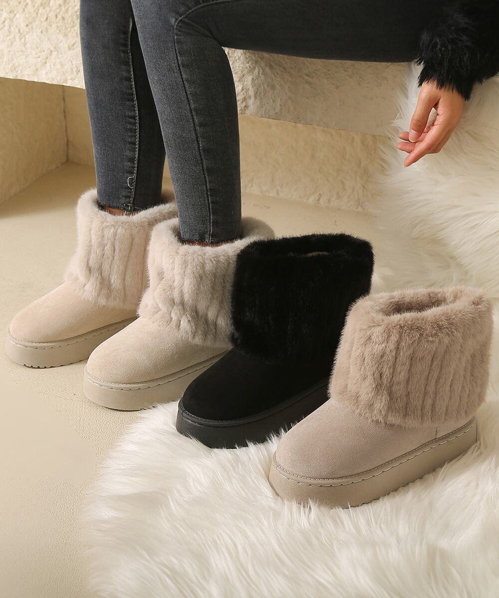 秋冬の定番靴、シンプルなデザインで着る服を選ばない無地のムートンブーツ。