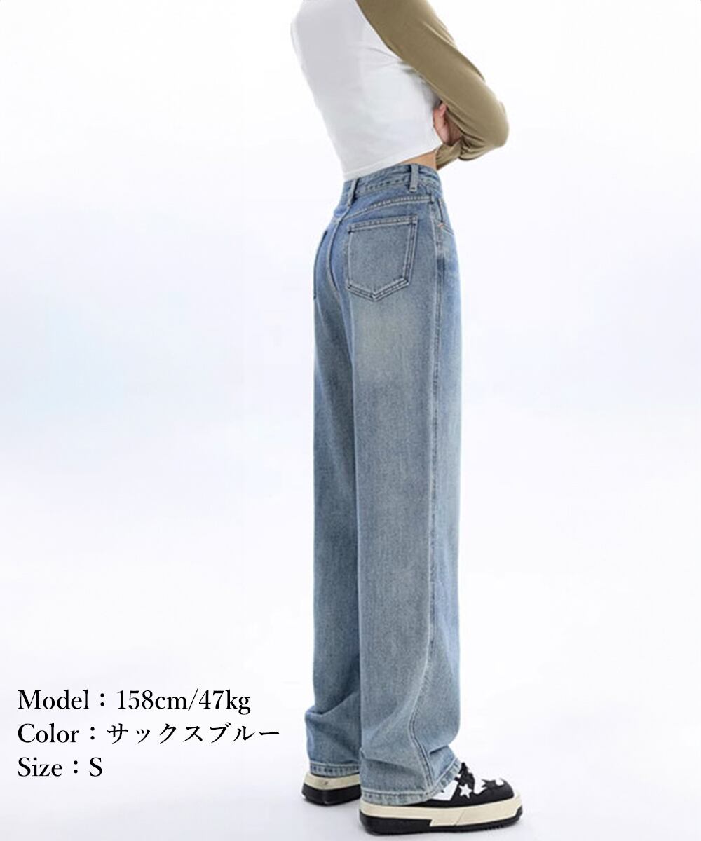レディース ハイウエスト セミワイドパンツ 韓国風 ウォッシュ加工デニム あったか ジーパン 美脚脚長カジュアルボトムス